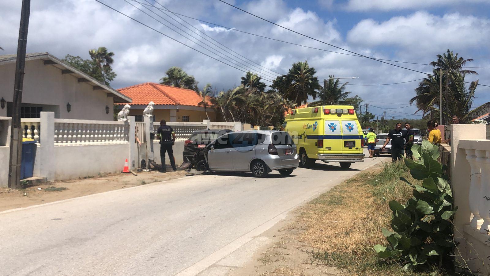 Diamars mainta a drenta informe di un accidente cu hende herida na Tanki Flip, mesora a dirigi tanto polis como ambulans na e sitio. Na yegada di e patruya a bin compronde cu aki ta trata di un accidente unda cu un auto no a duna preferencia na e otro y despues di e impacto un di nan a bay dal riba un cura di e cas. Debi na e impacto un persona a resulta herida. Na yegada di e ambulans nan a atende e victima y a transporte pa hospital.