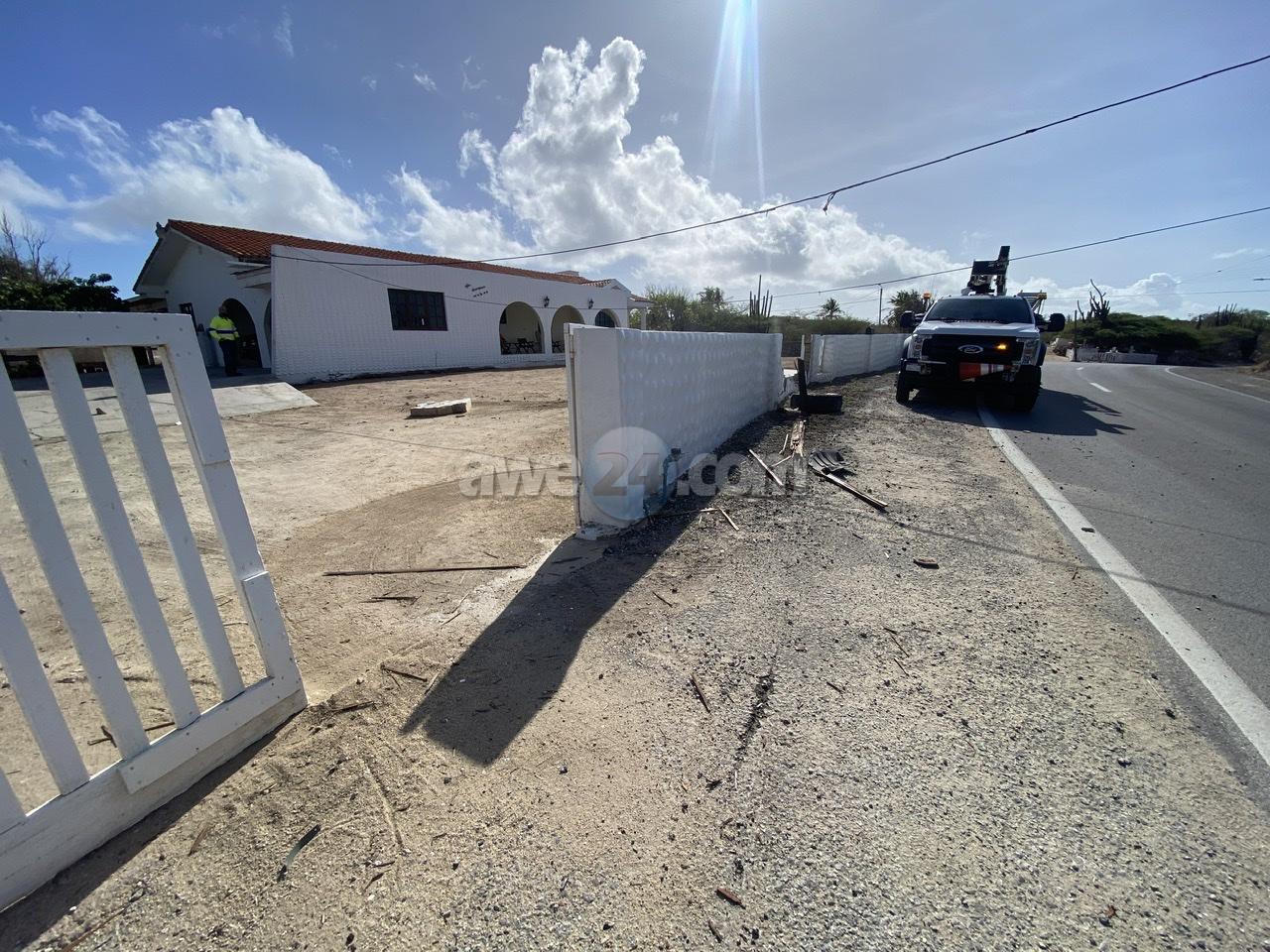 Diahuebs mainta durante patruya polisnan atento a bin topa cu un accidente cu a caba di pasa na Weg Sero Blanco, mesora nan a baha atende e accidente. Ta trata aki di un dama chauffeur coriendo un pick-up Mitsubishi L200 bayendo pabao a baha caminda bay dal riba un palo di sosten y basha un cura di cas abao. E impacto tabata asina fuerte cu e wiel di dilanti banda drechi a kita completamente y e pick-up a sigui varios meter mas pabao ta core riba 3 wiel. Aunke e daño ta hopi toch afortunadamente ningun hende a resulta herida.