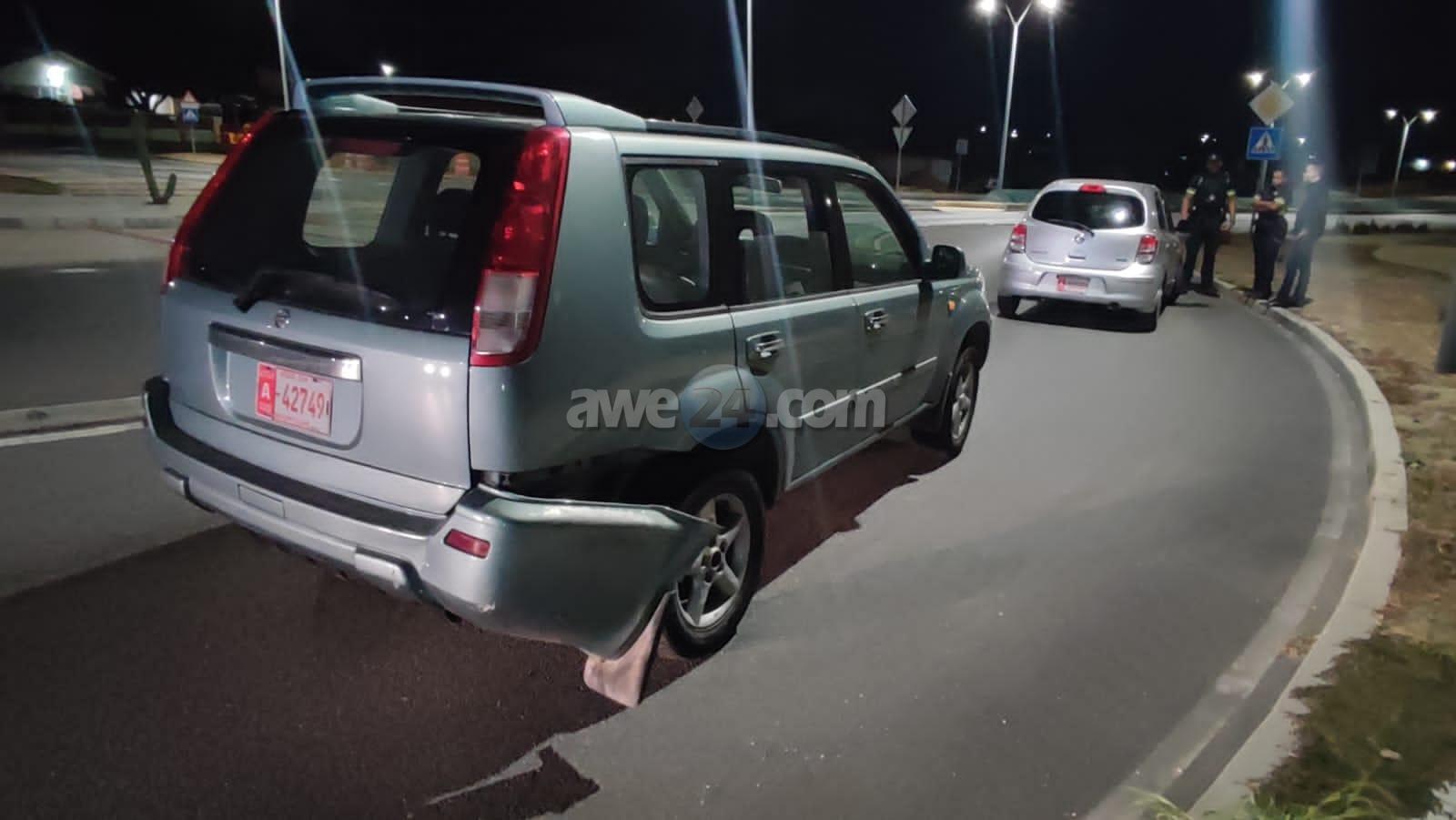 Diasabra madruga a drenta informe di un accidente na e Paperclip Rotonde, mesora a dirigi un patruya na e sitio. Na yegada di e patruya a bin compronde cu e chauffeur di e Nissan March a yega subi e rotonde sin a duna preferencia y a bay dal riba un Nissan X-Trail. Aunke impacto tabata un poco fuerte cu algun daño toch afortunadamente ningun hende a resulta herida.