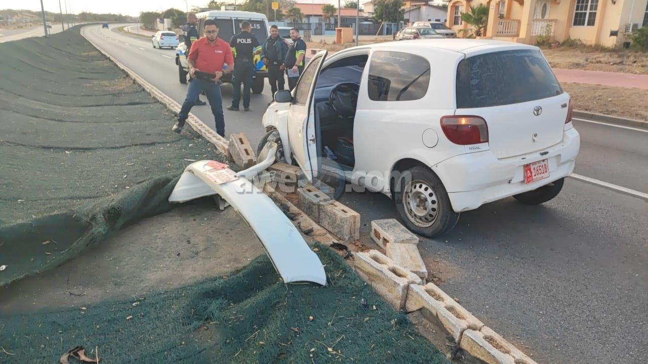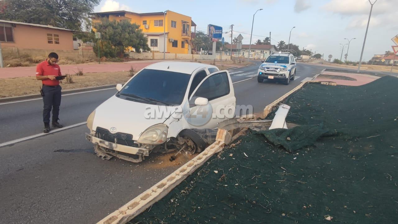 Diadomingo mainta a drenta informe di un accidente riba Watty Vos Boulevard. Mesora a dirigi un patruya na e sitio. Na e yegada di e polis a bin compronde cu un persona cu lo tabata bou di influencia a perde control y a bai dal den e berm memey di caminda. Afortunadamente ningun persona a resulta herida. Polis a detene e chauffeur y a transporte pa warda di polis.