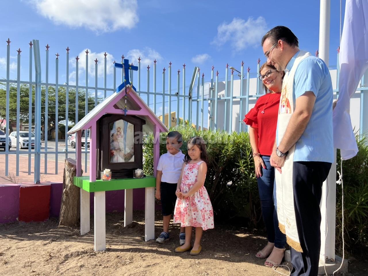 ORANJESTAD: Diabierna ultimo Minister Endy Croes tabatapresente na Imelda Kleuterschool pa un ocasion hopi special caminda e scol a desvela nan logo nobo. Tambe a presenta e himno adapta di e scol. Tabata un mainta yena cu energia, color y alegria. Presente tambe pa compaña e docentenan yalumnonan riba e dia special aki tabata directora di SKOA sra.Anuesca Baly. Minister Endy Croes a hiba palabra unda e la bisa e muchanan pa laga e nificacion di e logo aki sirbi comoinspiracion y cu dia di mañan, nan ta esnan cu lo bay dirigipais Aruba. Algun tin un soño pa bira deportista otronan kisaspa bira polis, doctor etc. Minister Endy Croes ta convenci cu door di e estimulo cu e docentenan ta duna e alumno, nan porhaci nan soño bira un realidad. E mandatario di Enseñansa a pidi e alumnonan pa scucha di nan docentenan y pa haci bon mucha cu otro, pasobra nos tur tin mester di otro.