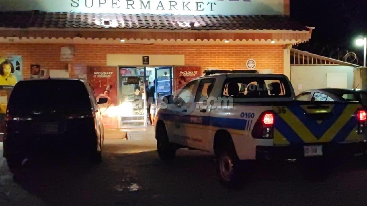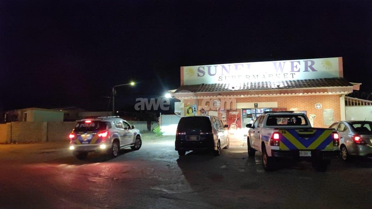 Dialuna anochi alrededor di 9’or y 20 a drenta informe di un caso di atraco na Sun Flower Supermarket na Tanki Leendert, mesora a dirigi patruyanan na e sitio. Na yegada di e patruya a bin compronde cu un atraco a caba di tuma lugar unda cu 2 persona masculino delega pero no por a distingui nan color ya cu nan tabata full tapa di pia te na cabes y cu handschoen bisti ambos di 1,75m di estatura. Un di e atracadornan tabata bisti cu sweater preto manga largo, cu jeans largo y sapato preto. E otro tabata cu un sweater color greis manga largo, jeans largo, mea preto cu slof blanco y handschoen blauw cu preto. Ademas nan a papia papiamento cu un accento latino den dje. E atracador cu sweater preto tabata arma un obheto preto cu punta di zilver cual tabata parce un martiu pero cu punta skerpi. E atracadornan a bay cu entre 600 pa 700 Florin. Ambos atracador a core bay panort na pia.