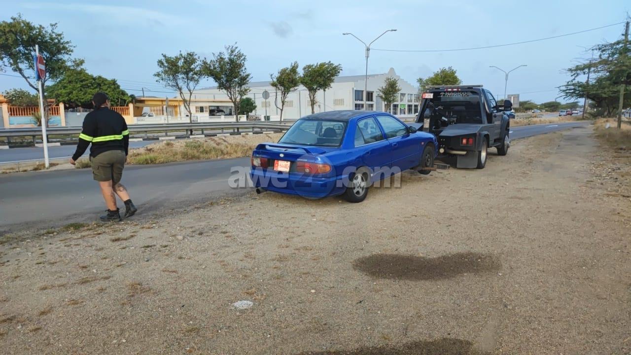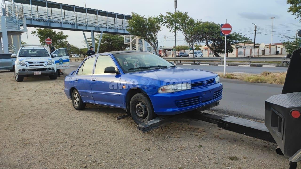Diabierna atardi durante patruya na Pos Chikito polisnan atento di distrito # a tuma nota di un auto sospechoso, mesora a bay para esaki pa un control. A bin resulta cu e auto no tabata tin ningun papel na ordo mesora polis a confisca e auto. Polis a puntra e chauffeur pa su identificacion y a bin resulta cu tanto e chauffeur como e ocupante no por a mustra ningun identificacion of comprobante cu nan ta legalmente na Aruba. Mesora a detene ambos tambe y a bay cu nan pa warda di polis y despues pa Warda Nos Costa mientras a solicita takelwagen pa hiba e vehiculo warda di Balashi.