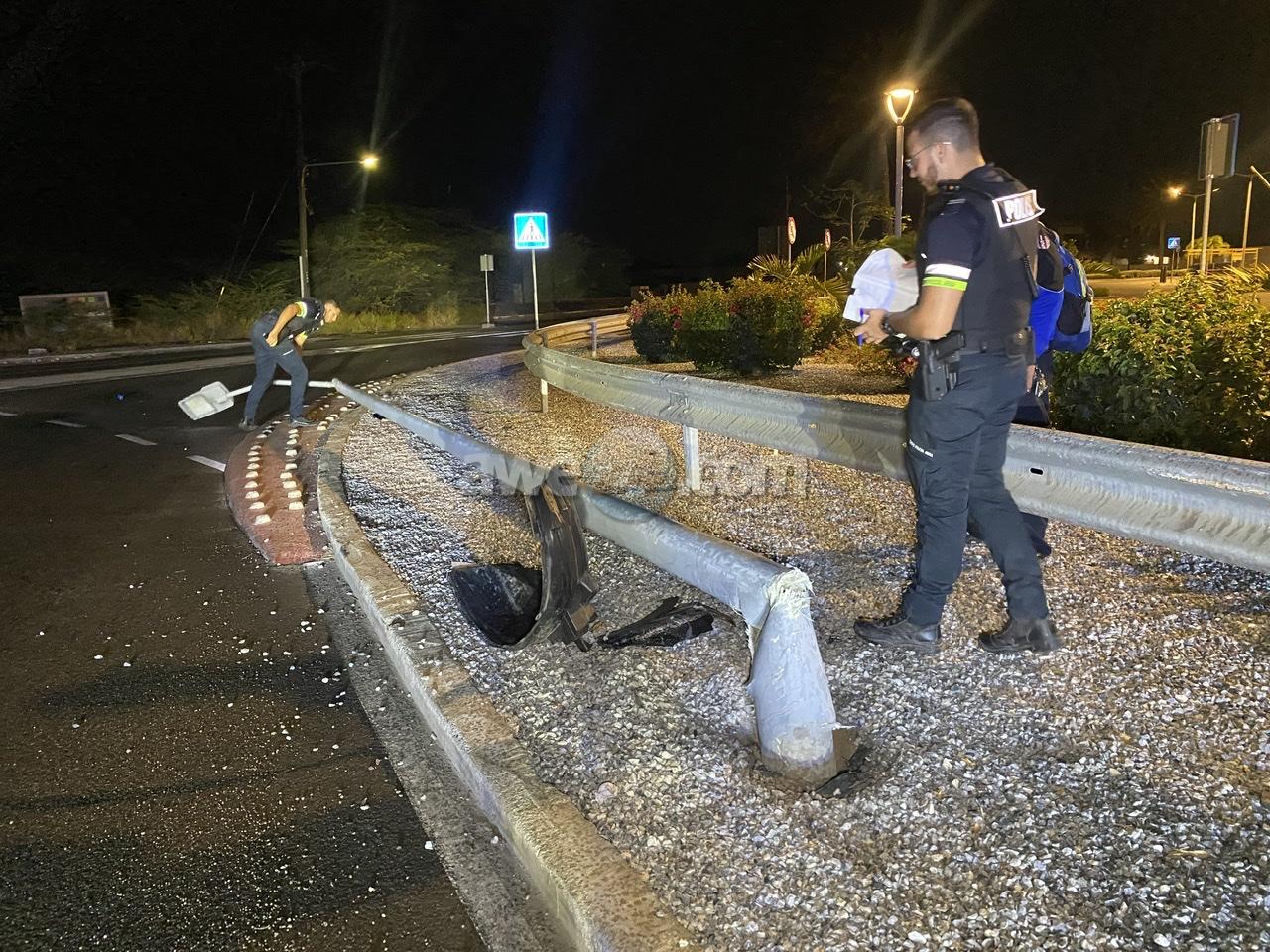 Diadomingo madruga a drenta informe di un accidente na e rotonde banda di Superfood, mesora a dirigi un patruya na e sitio. Na yegada di e patruya a bin compronde cu aki ta trata di un Toyota Rush preto cu a dal e palo di lus kibra bente abao y sigui corr bay. Awpr ta keda na polis di trafico pa bay busca e auto aki y pone para responsabel pa e daño cometi.