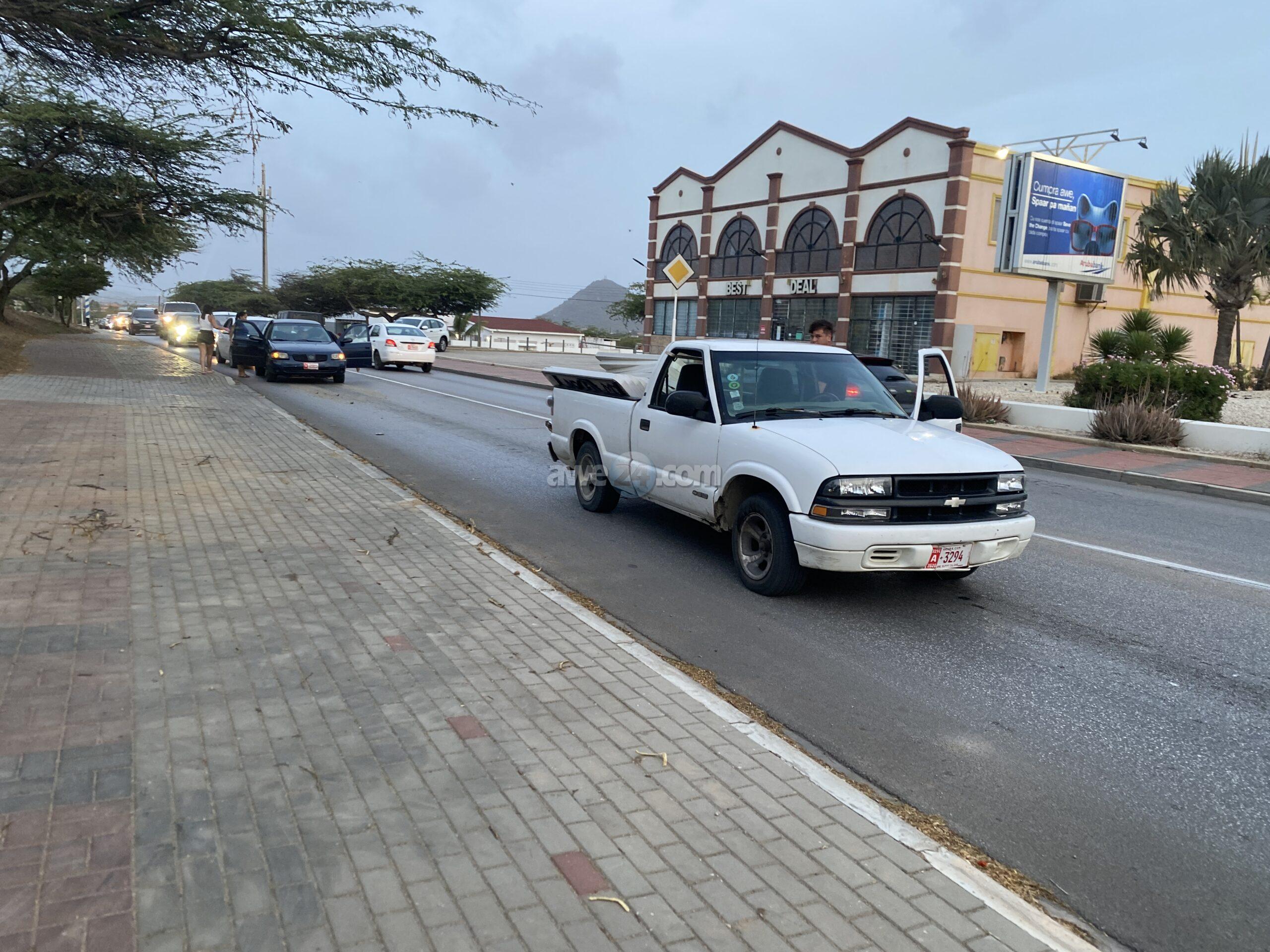 Diadomingo atardi a drenta informe di un accidente na e rotonde Paradera. Aki e chauffeur di un Nissan Sentra no a regula su velocidad ni a mantene distancia a bay dal fuertemente tras di un pickup. Afortunadamente ningun hende a resulta herida.