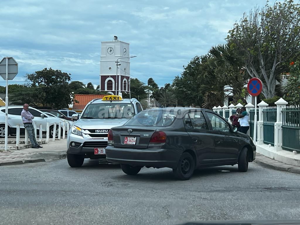 Diaranson mainta a drenta informe di un accidente na e cruzada Oranjestraat y Wilhelminastraat, mesora a dirigi un patruya na e sitio. Na yegada di e patruya a bin compronde cu aki ta trata di un accidente pa falta di preferencia unda e taxi a hal bay dilanti ora cu e Toyota Yaris tabata bira y nan a dal den otro. Afortunadamente ningun hende a resulta herida.
