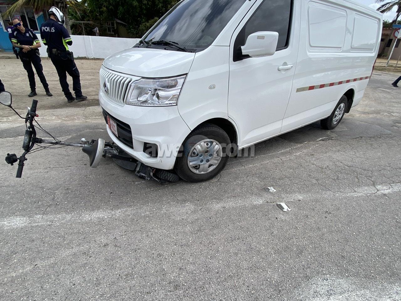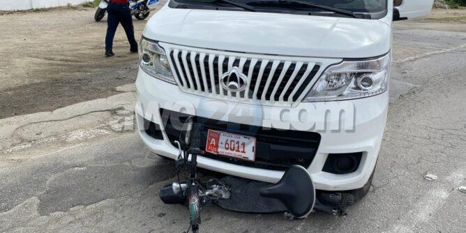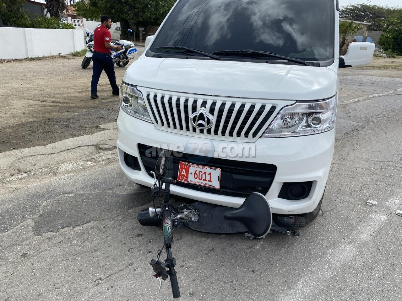 Diasabra mainta a drenta informe di un accidente cu hende herida na Santa Helenastraat, mesora a dirigi tanto polis como ambulans na e sitio. Na yegada di e patruya a bin compronde cu e chauffeur di e van no a mira e electric step y a subi e caminda y diripiente a dal e ciclista. Debi na e impacto e ciclista a resulta levemente herida. Na yegada di e ambulans nan a atende e victima na e sitio mes.