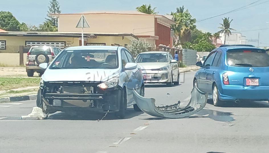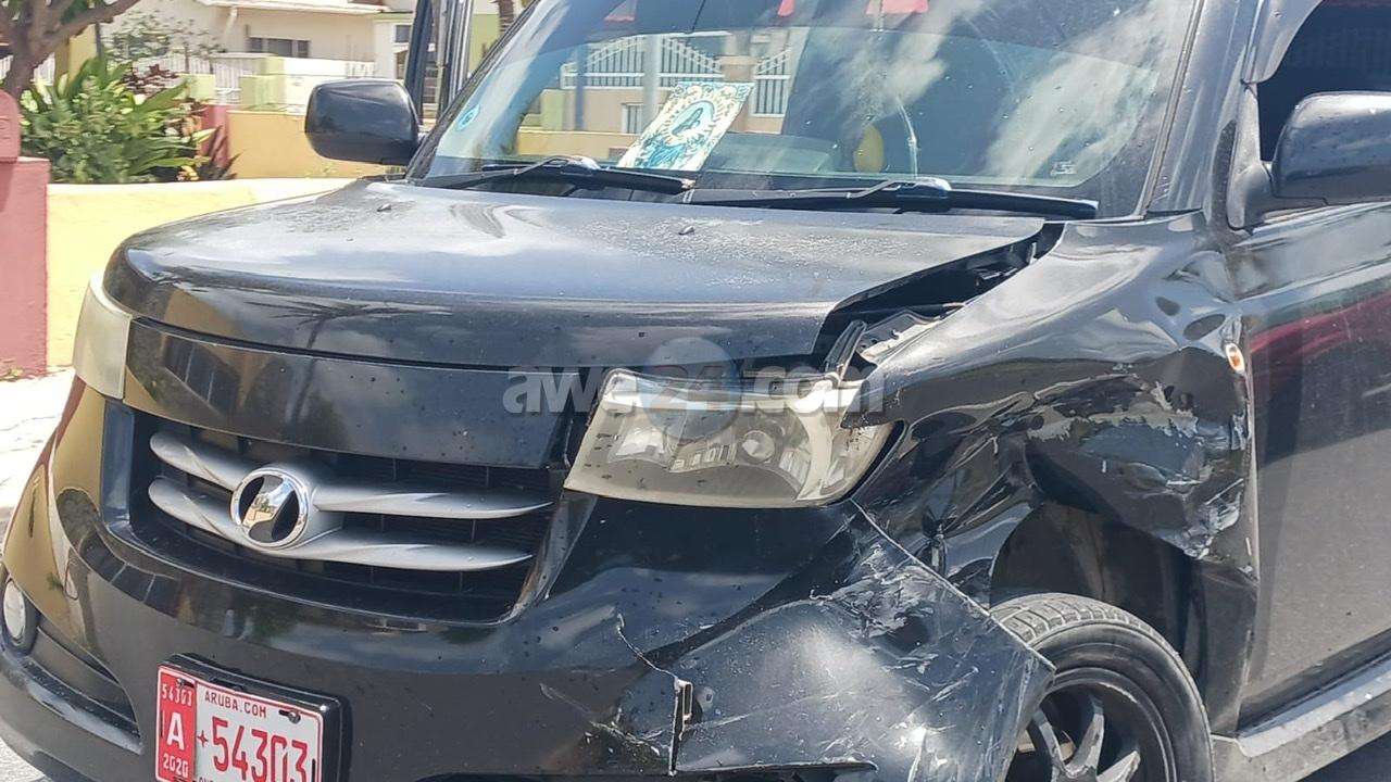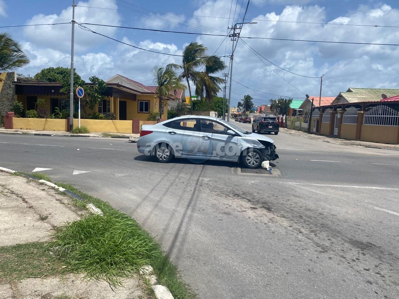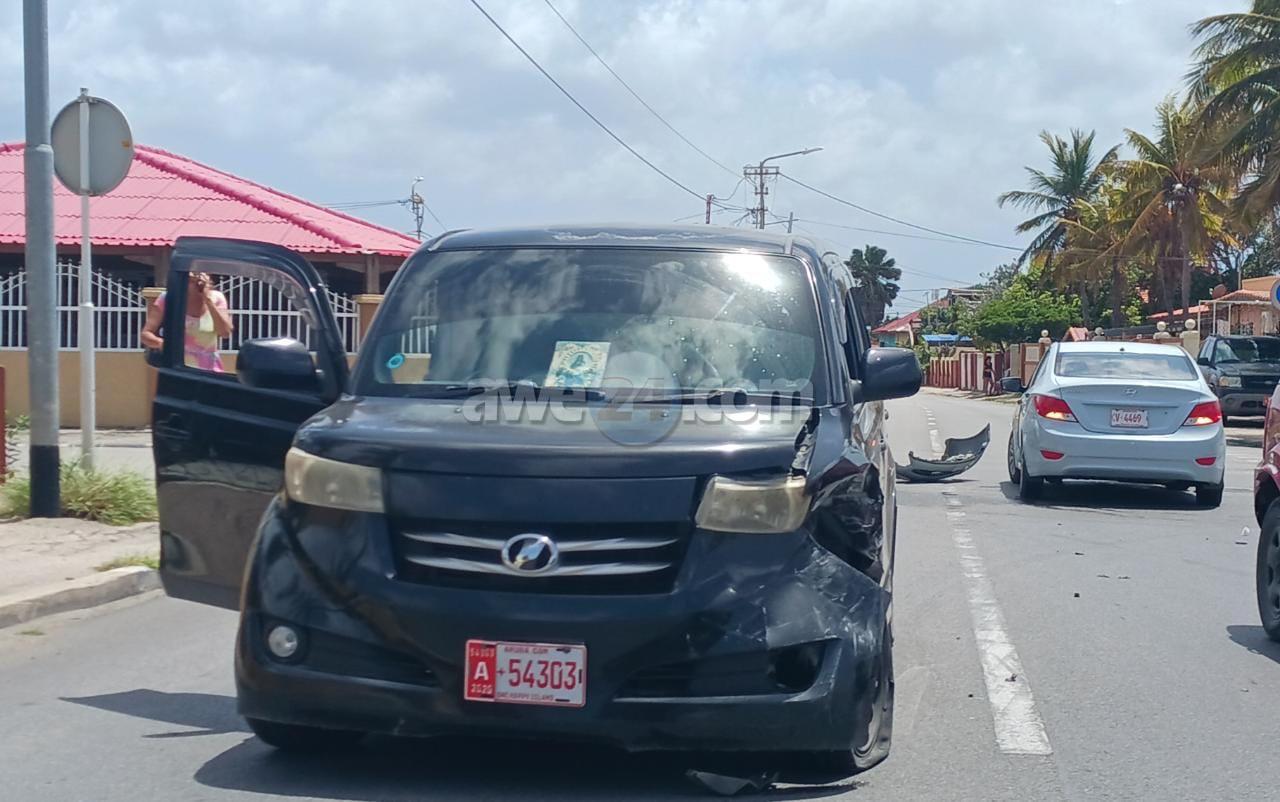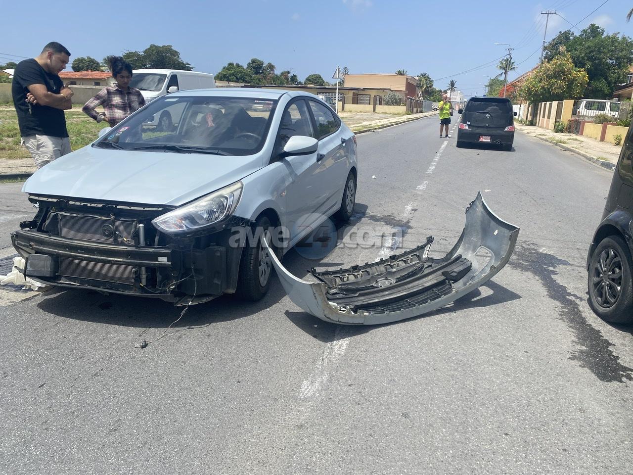 Diadomingo merdia a drenta informe di un accidente na e cruzada Emmastraat/ Prof. Lorentzstraat, mesora a dirigi un patruya na e sitio. Na yegada di e patruya a bin compronde cu aki ta trata di un accidente unda cu e dama turista cu tabata bayendo zuid den Emmastraat no a para pa duna preferencia na e auto preto cu tabata bini di pabao. Aunke e impacto tabata fuerte toch afortunadamente ningun hende a resulta herida.