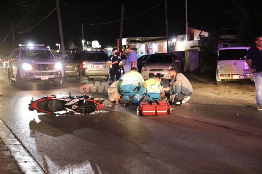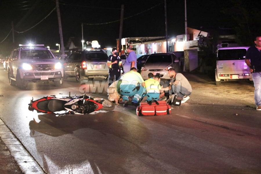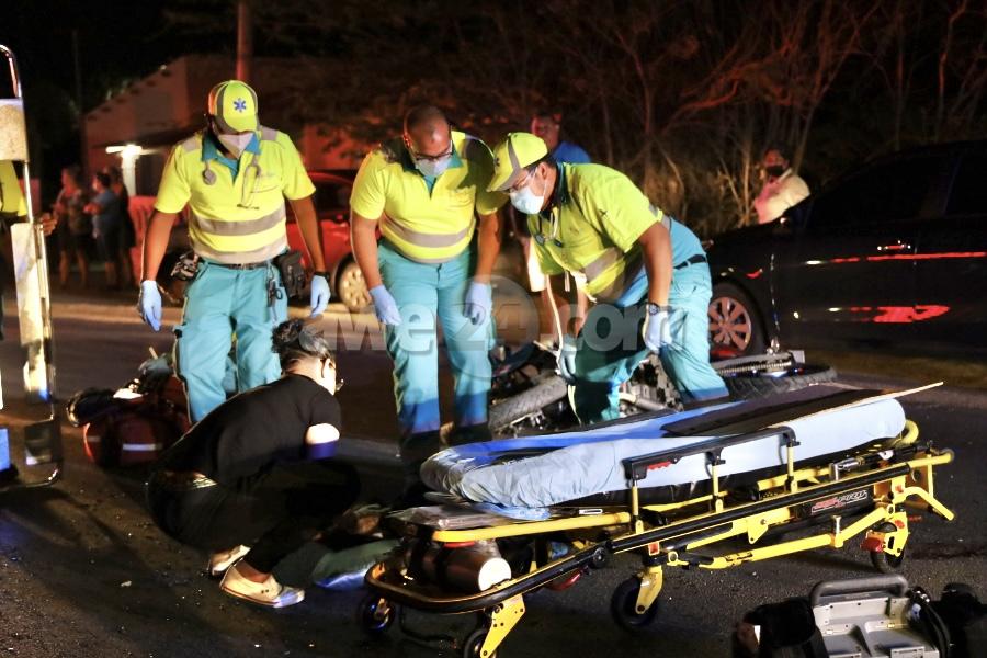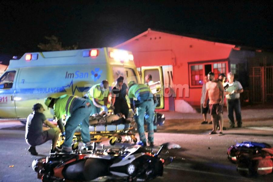 Diahuebs anochi a drenta informe di un accidente cu hende herida na Shiribana, mesora a dirigi tanto polis como ambulans na e sitio. Na yegada di e patruya a bin compronde cu aki ta trata di un accidente entre un auto cu a bay bira net ora cu un auto tabata bay pas’e, E impacto tabata fuerte y e motociclista a resulta seriamente herida. Un ambulans cu tabata hibando un otro pashent hospital a para djies un rato pa atende y ora e otro ambulans a yega a atende e victima y a transporta e victima cu urgencia pa hospital. Mientras polis a solicita e investigadornan technico y forensyco pa documenta e detayenan di e accidente aki. Como cu e situacion ta critico a solicita presencia di slachtofferhulp. Durante tabata investigando a yega un persona y a bay agredi e manehador di e auto cu a bira dilanti e brommer. Polis cu a nota esey mesora a bula aden y detene e agresor y nan a hib’e warda di polis pa maltrato.