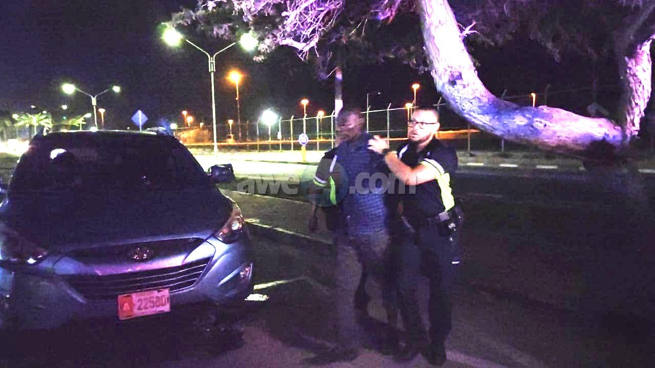 Diadomingo a drenta informe di un accidente na e turbo rotonde na L.G. Smith Blvd., mesora a dirigi un patruya un patruya na e sitio. Na yegada di e patruya a bin compronde cu aki ta trata di un chauffeur burachi cu lo a subi un baranca y a hal’e un bon distancia pero e chauffeur no por a sigui core y a pega soño. Polis a pidi pa e vehiculo di transporte. Na yegada di e vehiculo di transporte a bay lanta e chauffeur y esaki no tabata sa mes kiko a pasa cun’e. Polis a detene pa core auto bao influencia y ocasiona un accidente. Door cu e auto a subi e baranca e oilpan a kibra y a basha hopi azeta riba e caminda.