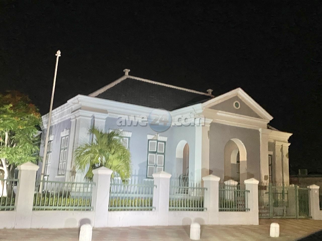 Diadomingo anochi a drenta informe di cu e bentana di e edificio di Algemene Rekenkamerden Wilhelminastraat ta habri, mesora a dirigi un patruya na e sitio. Na yegada di e patruya a nota cu un bentana di mas ariba ta mustra habri pero e bentana ey ta parti di decoracion pasobra su tras tin glas y esaki ta henter.