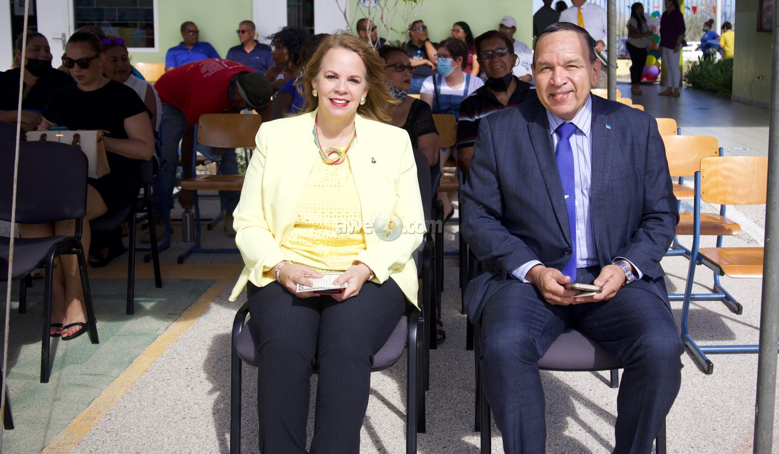ORANJESTAD: Siman pasa Minister Endy Croes hunto cu colega Prome Minister Evelyn Wever – Croes tabata di bishita na Scol Soeur Juliette, antes Emma School. Na e ocasion special a presencia cambio di nomber di e scol como tambe a para keto y reflexiona riba tur loke e scol a brinda durante su añanan di existencia y tur loke e scol, maestronan y alumnonan a logra.
