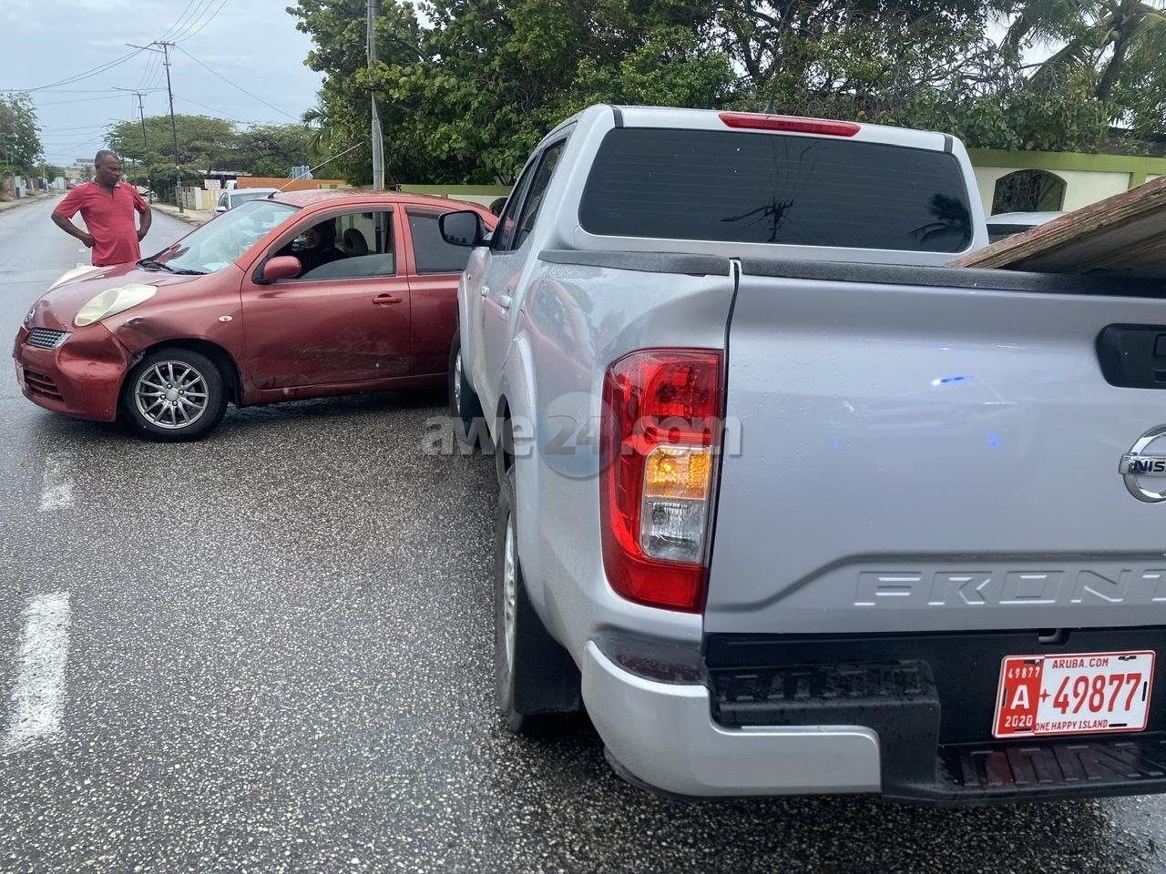 Den oranan di merdia a drenta informe di un accidente cu hende herida na e crusada Rudolf Arendsstraat/Driemasterstraat, mesora a dirigi tanto polis como ambulans na e sitio. Na yegada di e patruya a bin compronde cu aki ta trata di un accidente unda cu un Nissan March biniendo for di Rudolf Arendsstraat a para na e crusada y a subi e crusada net ora cu un Nissan Frontier tabata biniendo di nort riba e caminda di preferencia di Driemasterstraat y e Frontier a dal e March bir’e 180 grado y den e movecion aki e March a dal un otro auto para banda pabao di e crusada wardando su turno. E chauffeur di e March cual tabata esun cu a resulta herida tabata sinta na banda di e fuerte impacto pero no tabata desea assistencia di ambulans pa cual motibo a cancela esaki. Como cu e March no tabata tin ningun papel na ordo polis a confisca esaki.