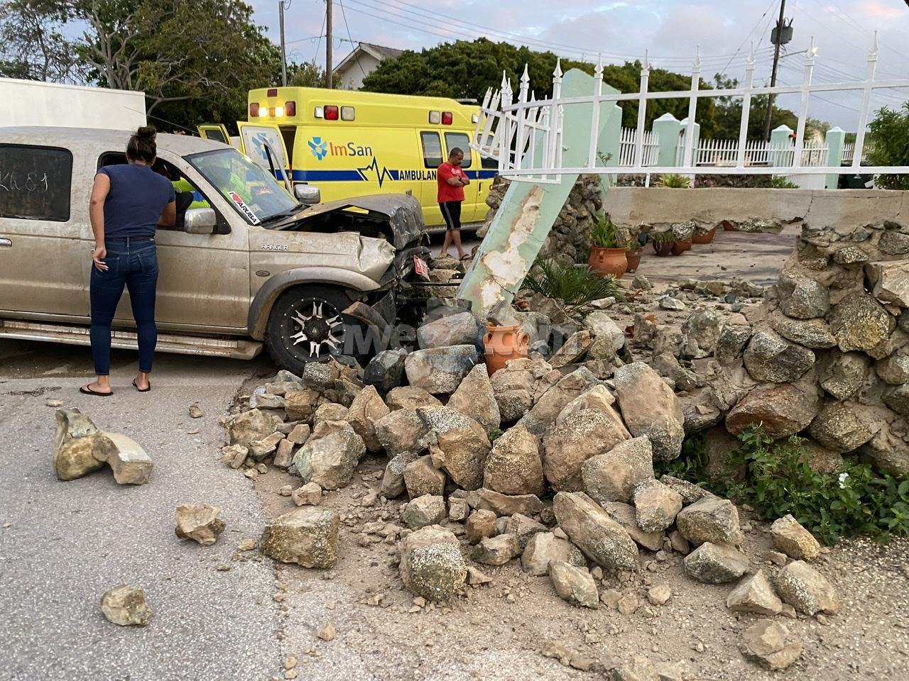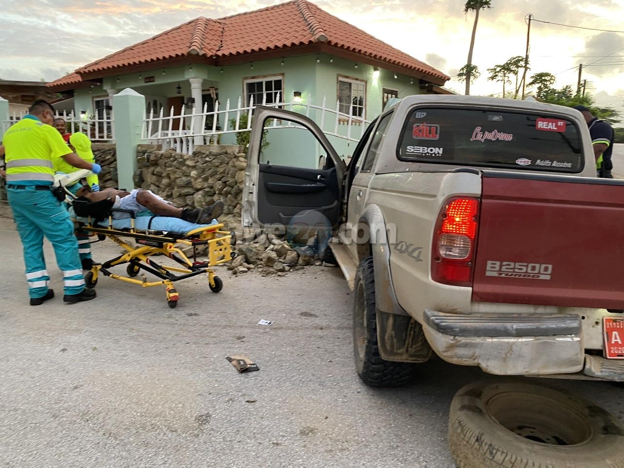 Diadomingo mainta a drenta informe di un accidente cu hende herida na Noord Cura Cabay, mesora a dirigi tanto polis como ambulans na e sitio. Na yegada di e patruya a bin compronde cu aki ta trata di un accidente unda cu e chauffeur di e Ford Ranger pick-up A35933 bayendo direccion pariba a bay dal straight riba un muraya di cura di un cas na e splitsing. Debi na e fuerte impacto e chauffeur a resulta herida. Na yegada di e ambulans nan a atende e victima y a transporte pa hospital.