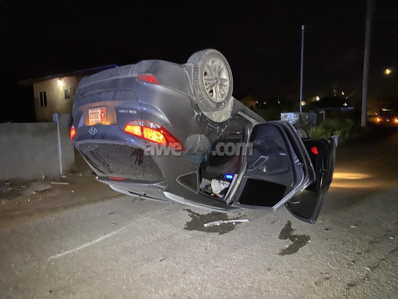 Diahuebs madruga a drenta informe di un accidente cu hende herida na Sero Janchi, mesora a dirigi tanto polis como ambulans na e sitio. Na yegada di e patruya a bin compronde cu aki ta trata di un accidente unda despues di un bocht e chauffeur di e Hyundai Tucson A31021 a baha caminda dal basta duro riba e Suzuki Grand Vitara A68462 cu tabata staciona banda di caminda bira esaki casi 45 grado y finalmente bolter bay cay memey di caminda. Debi na e impactonan y boltermento e chauffeur a resulta herida. Na yegada di e ambulans nan a atende e victima y a transporte pa hospital.