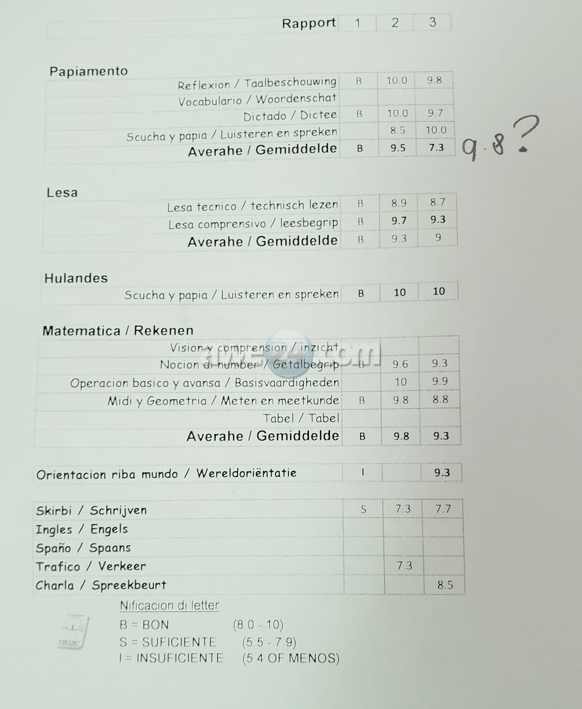 Scol Primario Kudawecha, y Scol Basico Washington, henter klasnan a ricibi rapportnan eroneo