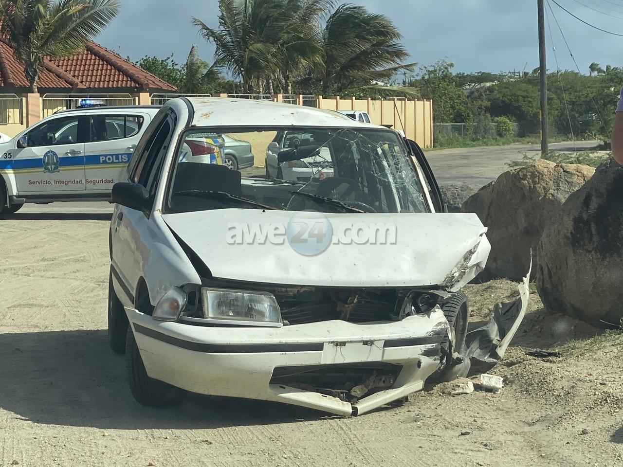 Diasabra atardi a drenta informe di un accidente cu hende herida na e cruzada di Sero Janchi, mesora a dirigi tanto polis como ambulans na e sitio. Na yegada di e patruya ya ambulans tabata na e sitio caba pero no a logra haya e persona herida. Polis a bin compronde cu e chauffeur a bay bira na man drechi pero cu velocidad halto ela bay dal riba un piedra grandi banda di caminda. Segun un testigo e chauffeur ta herida y tin sanger na su cara y ela cana bay panort. Tanto polis como ambulans a core rond bisca e chauffeur pero nan no a hay’e.