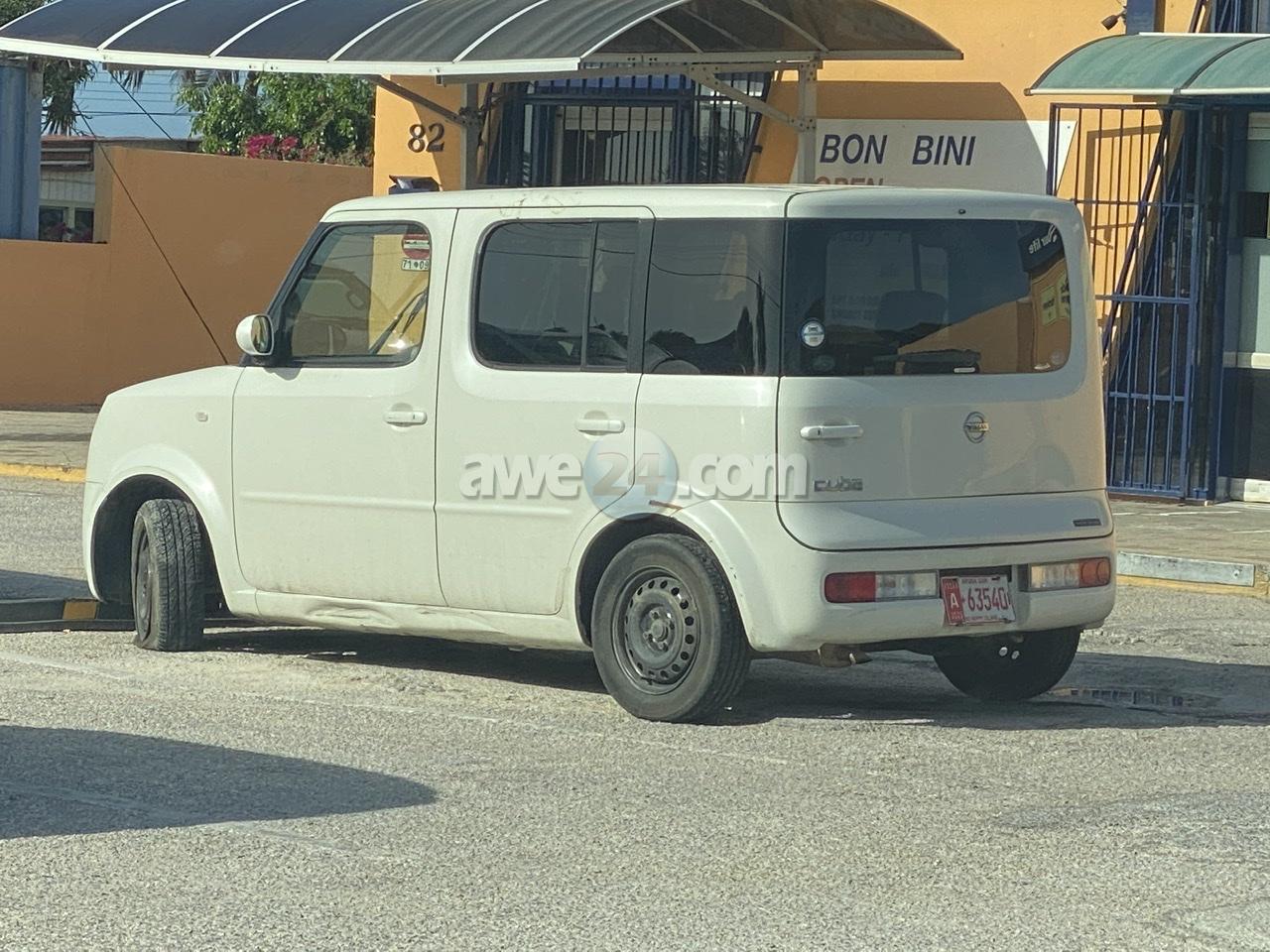 Diasabra atardi a drenta informe di cu tin un auto laga atras den e parkinglot di Lucky Electricals, mesora a dirigi un patruya na e sitio. Na yegada di e patruya polis a compronde for di e doño cu mainta ela bin haya e auto eynan y atardi ainda e tey. Polis a nota cu e auto tin un flat tire. E doño di e negoshi a bisa cu e por keda te dialuna mainta si no polis laga nan bay cun’e!