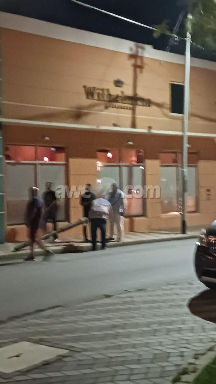E siman aki nos a reporta den un informe di cu diferente palonan di lus ta cayendo, un auto a bira victima e siman aki, un otro palo di sosten a hera cay riba un peaton na J.G. Emanstraat. Awor ta un otro palo di lus a hera cay riba un turista saliendo for di un restaurant den Irenestraat. Hallo unda e revision y control a keda???