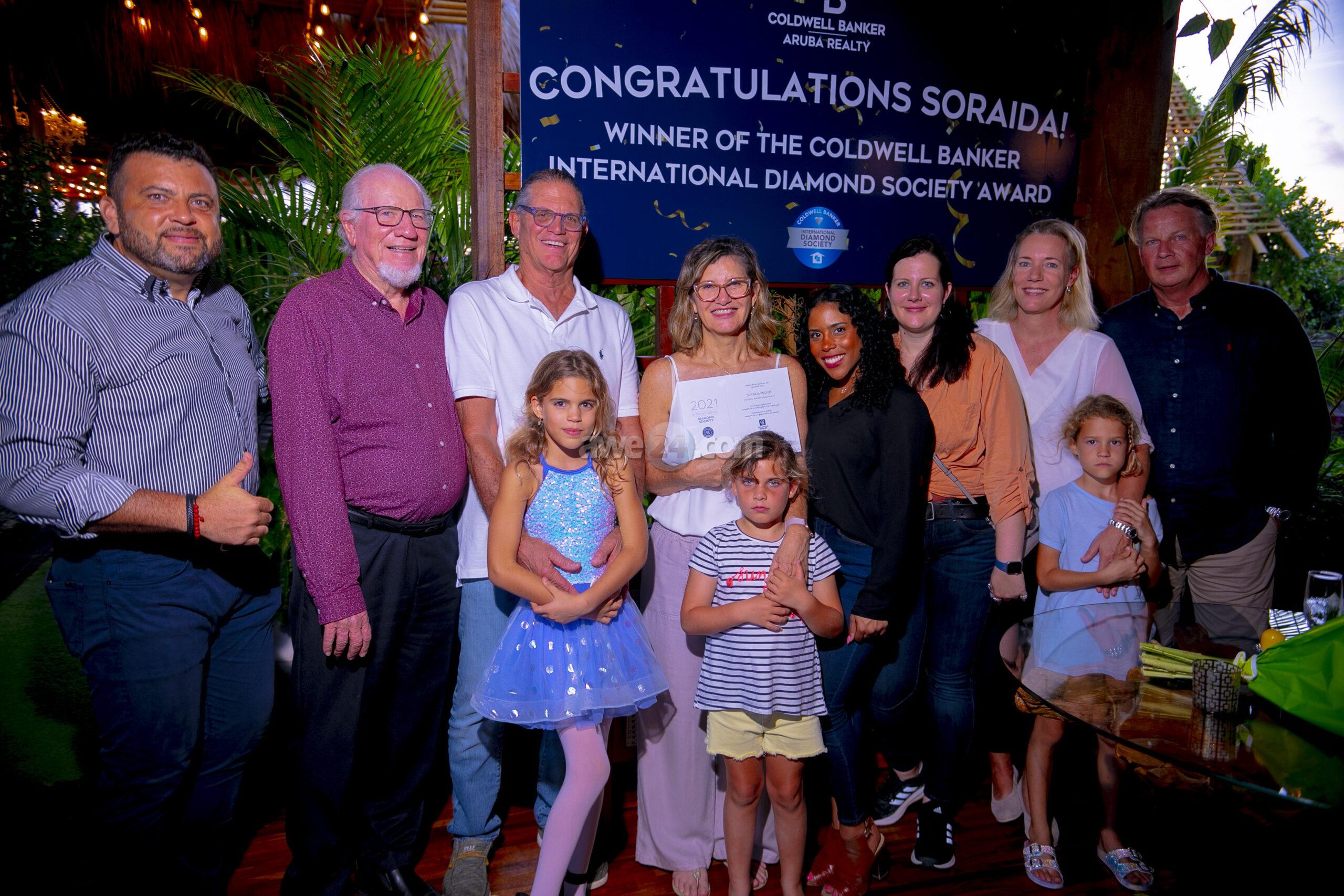 Dick A. Sougé a sigui bisa “Pabien Soraida! Awor bo ta un miembro elite di Coldwell Banker International DiamondSociety! Nos ta orguyoso cu bo ta un miembro di e ekipo di benta sobresaliente di Aruba, cu tur aña atrobe ta sigui kibra record bendiendo propiedadnan na Aruba.”