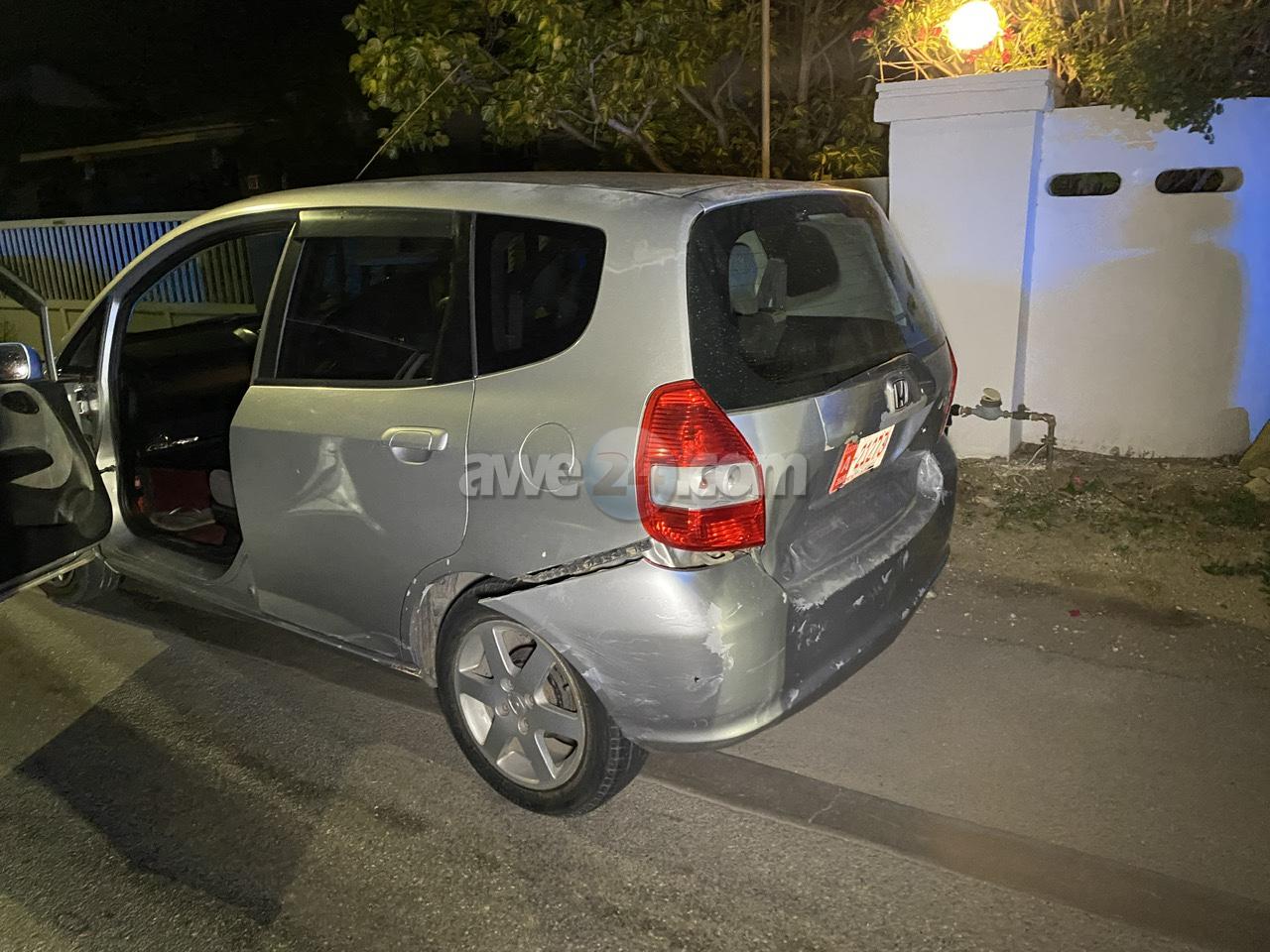 Diasabra madruga a drenta informe di un accidente na Caya Ritmo, mesora a dirigi un patruya na e sitio. Na yegada a bin compronde cu aki ta trata di un accidente unda cu un Mitsubishi Lancer blanco basta nobo cu glasnan tinted lo a dal tras di e Honda Fit y despues di e impacto esaki a core bay. Afortunadamente ningun hende a resulta herida. Suplica ta bay na cualkier persona cu por mira un Mitsubishi Lancer blanco basta nobo cu sla dilanti avisa polis mesora e vehiculo ey por ta esun cu lo a dal y core bay.