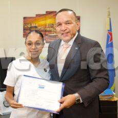 ORANJESTAD: Diabierna ultimo Minister Endy Croes a haciun bishita na St. Aloysius School na Noord. Na fin di luna di april por medio di un conferencia di prensa e mandatario a anuncia y presenta oficialmente e proyecto di renobacion di St. Aloysius School.