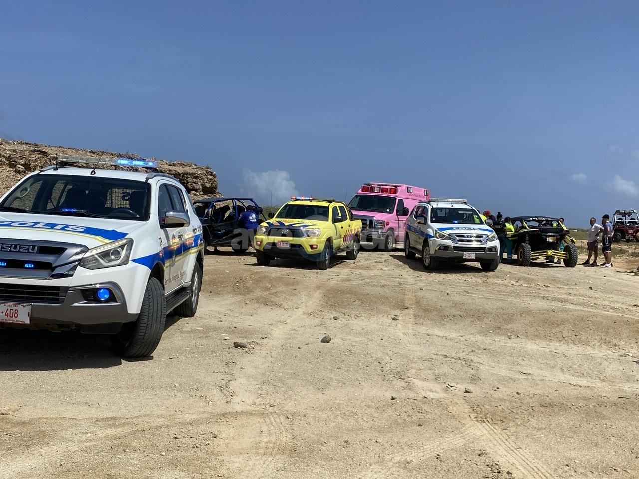 Diamars mainta a drenta informe di un accidente cu hende herida na Tera Cora pariba di “Lighthouse” mesora a dirigi tanto polis como ambulans na e sitio. Na yegada di e patruya a bin compronde cu durante un tour 4 turista den un UTV lo a bay haci algun maniobra riba tera cora pero a bolter y tur 4 a resulta levemente herida pero un di nan e UTV a bolter y a cay riba su man y a kibra su pols. E medical response a yega na e sitio mientras ambulans tabata na caminda. Nan a atende e victima y na yegada di e ambulans nan a tuma e victima over y a transporte pa hospital.