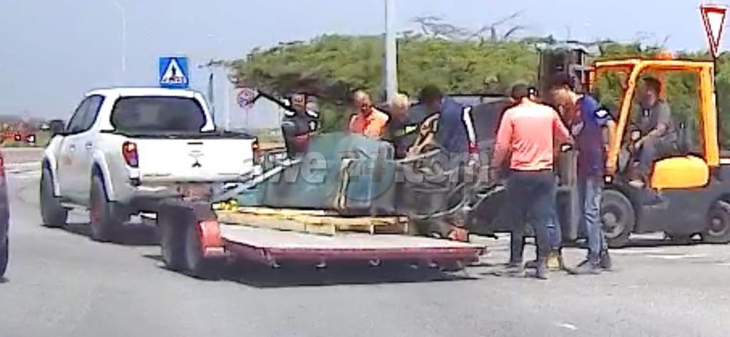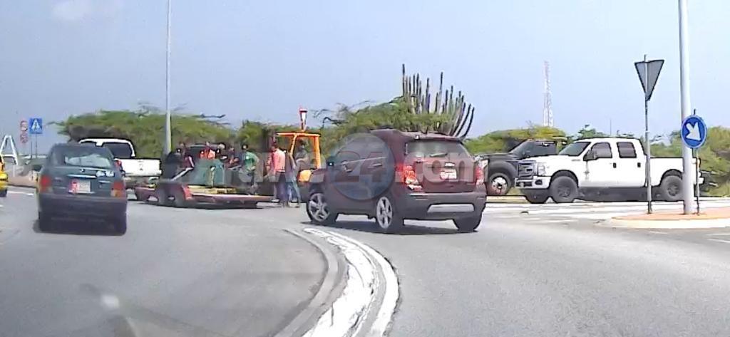 Diabierna atardi a sosode un incidente na e rotonde banda di Drive Inn unda esnan trasnportando parti di un equipo pisa den un forma irresponsable a haya e parti a cay riba caminda obstaculisando trafico formando peliger. Automobilistanan tabata tin un dilema pa sali for di e rotonde ya cu esaki tabata blokea y no tabata tin polis pa dirigi e trafico na e sitio. Despues di basta rato nan a logra alivia e situacion unda e trafico por a sigui pasa normal.