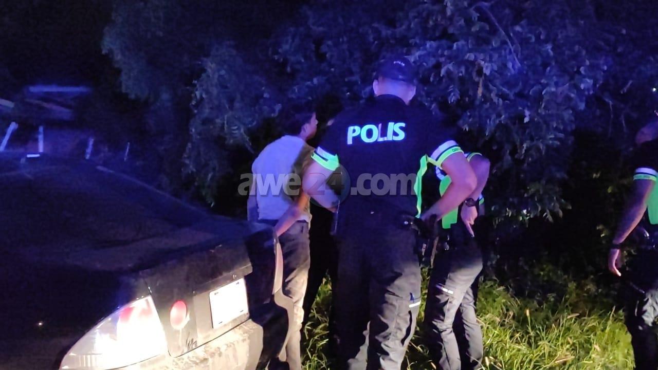 Diasabra madruga durante patruya patras di Coral Plaza polis ta nota un vehiculo Toyota Altezza preto A67406 ta drift y a bay pa par’e pero manera e chauffeur a nota polis esaki a cuminsa huy di esaki polis a start cu un persecucion cual a pasa Cunucu Abao, Hato, Tanki Flip, Boegoeroei y Washington unda eynan polis a logra par’e cu e fishtail manouvre unda e auto a accidenta y a logra detene e chauffeur.