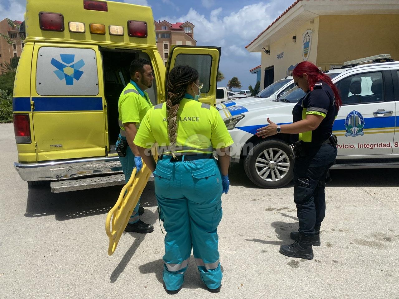 Dialuna merdia a drenta informe di cu un dama lo a cay na Palm Beach banda di post di strandpolitie, mesora a dirigi polis y ambulans na e sitio. Na yegada di e patruya a bin compronde cu aki ta trata di un dama cu a bay baha for di un stupi y a dal abao. Na yegada di e ambulans nan a atende e dama cu lo a verzwik su pia, despues a transporte pa hospital.