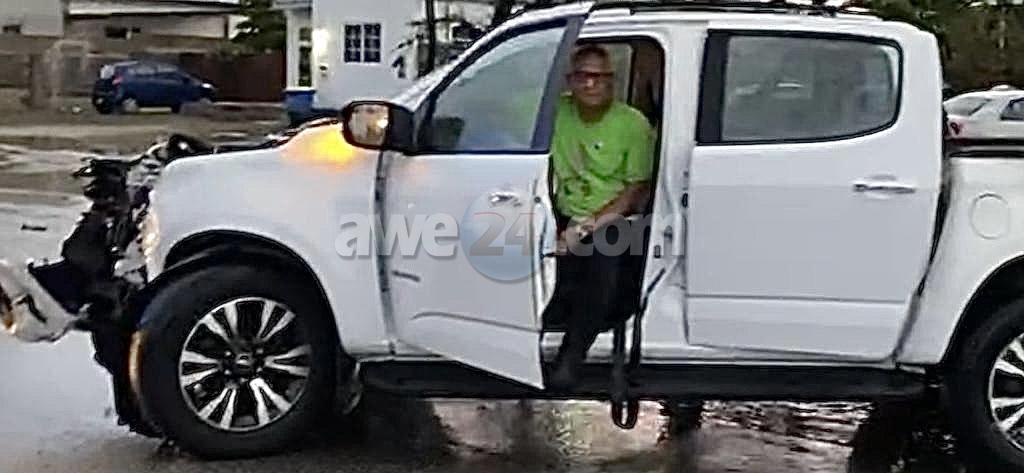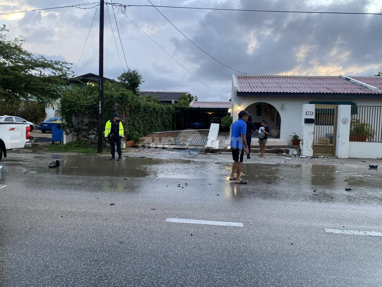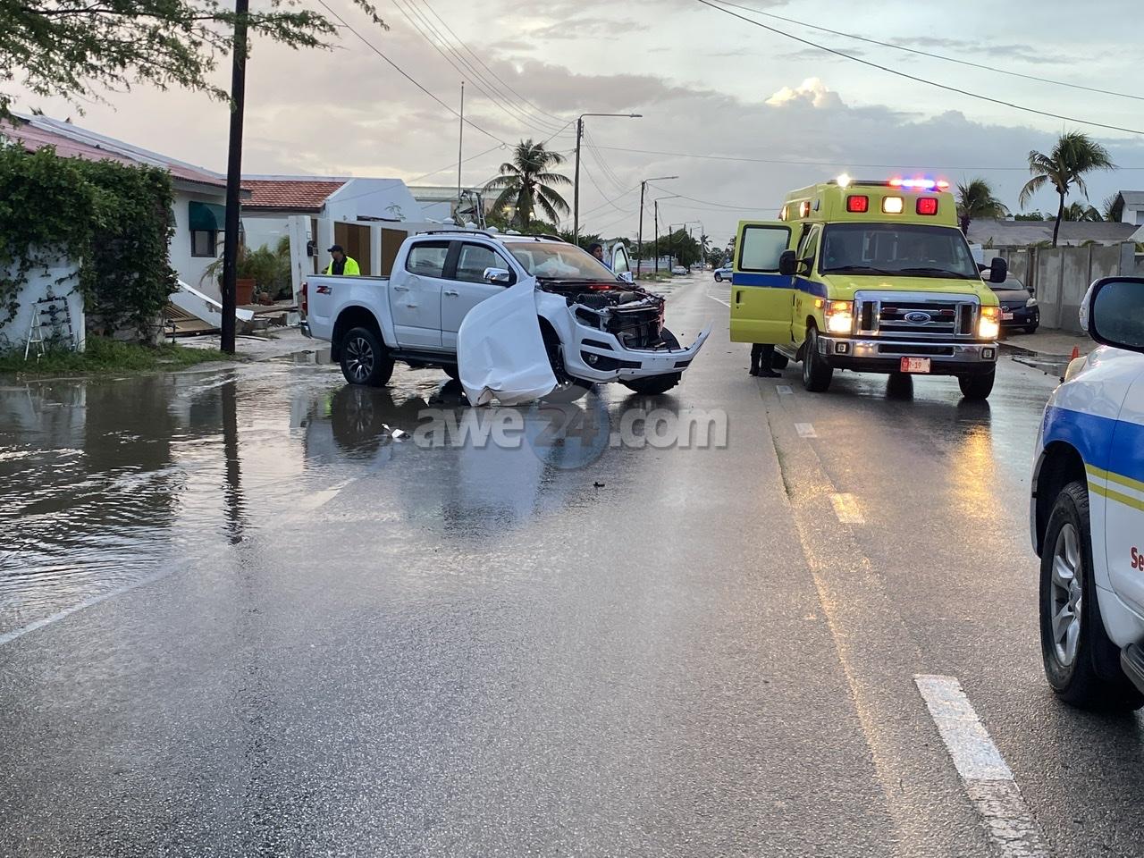 Diaranzon mainta a drenta informe di un accidente cu hende herida na Santa Helenastraat, mesora a dirigi tanto polis como ambulans na e sitio. Na yegada di e patruya a bin compronde cu aki ta trata di un accidente unda cu e chauffeur di e pick-up Chevrolet Colorado bayendo direccion pabao a pasa cu velocidad halto den un plas di awa y esaki a pone perde control slip bay dal riba un cura di un cas kibrando esaki. E impacto tabata fuerte y e chauffeur kende ta un persona di edad tabata keha di dolor di lomba. Na yegada di e ambulans nan a atende e victima y a transporte pa hospital.