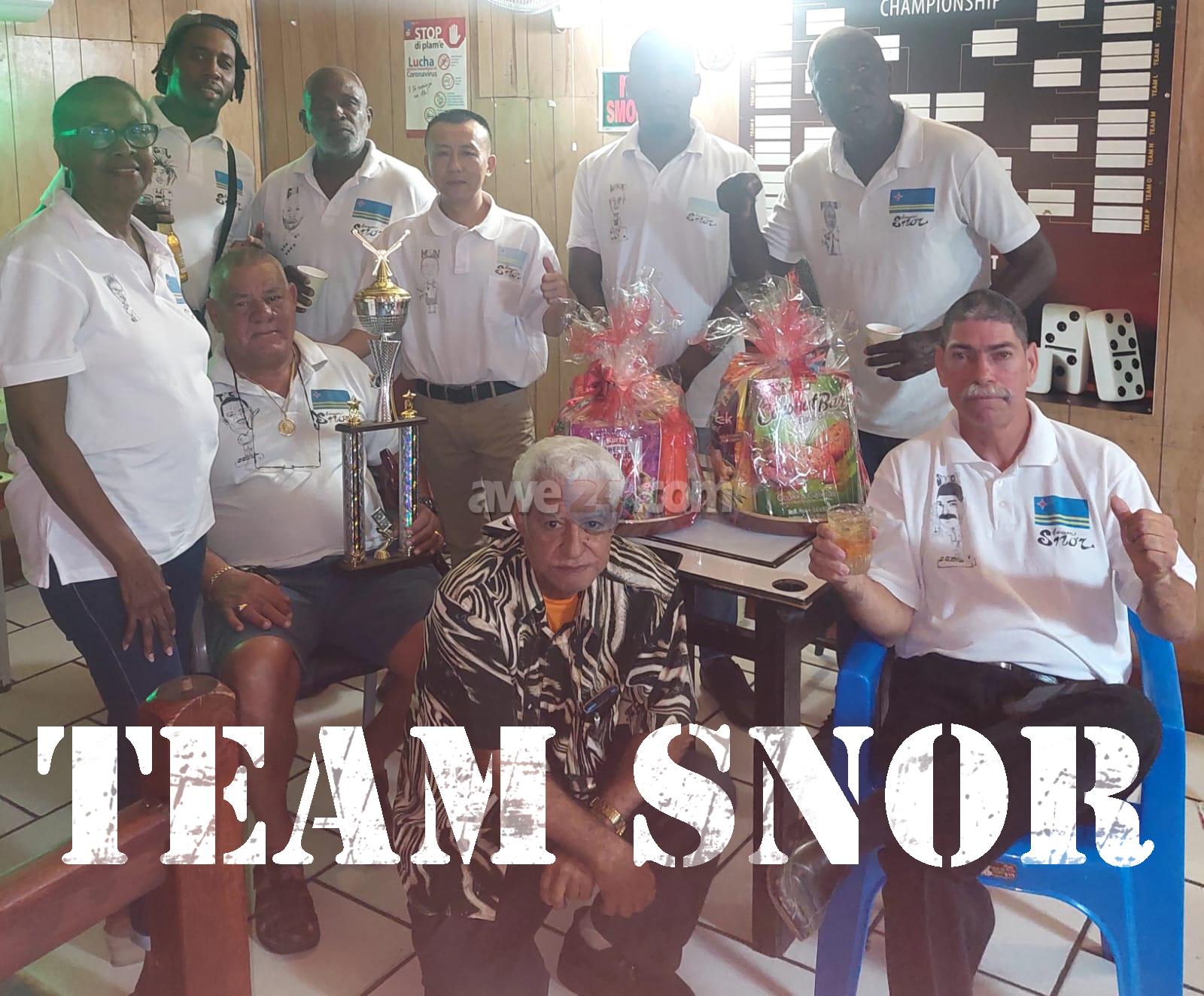 Wel, shonnan amante di “cutting edge” domino, ta manera cu e showdown dje anochi ey, e bataya entre Team SNOR y RANGERS DT, a start, un y tur den Team Snor por a observa y deduci cu e aura di Snor por ta a cambia, pero su style di hunga domino no. For di tempran palo a cuminsa coy Snor su curpa! Wega tras di wega ta bay perdi, y mes ora capitan di team, Ms. Margo, a duna instruccion cla y raspa pa un y tur den team Snor “step up to the plate” si no e storia dje anochi ey lo bay caba atrobe manera ultimo biahanan … bou dje palo di kwihi! RangersDT no a bin pa haci wega! Den prome buelta, mientras Snor ta hayando sota tras di sota, e otro integrantenan a hiba un bataya formal y cu score di 11-7, Team Snor ta drenta halftime c’un bentaha.