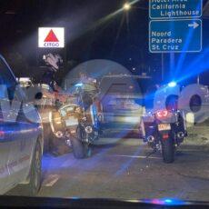 Diahuebs mainta a drenta informe di un accidente cu hende herida banda di Azure na Palm Beach, mesora a dirigi tanto polis como ambulans na e sitio. Na yegada di e patruya ya caba ambulans tabata na e sitio. Locual a a sosode ta cu e dama chauffeur a bira malo tras di stuur ela bay na banda robes di caminda bay dal riba e vangrailsnan. E ambulans a atende e dama y a transporte pa hospital. Polis a confisca e auto Zotye ya cu esaki no tabata tin su papelnan na ordo.