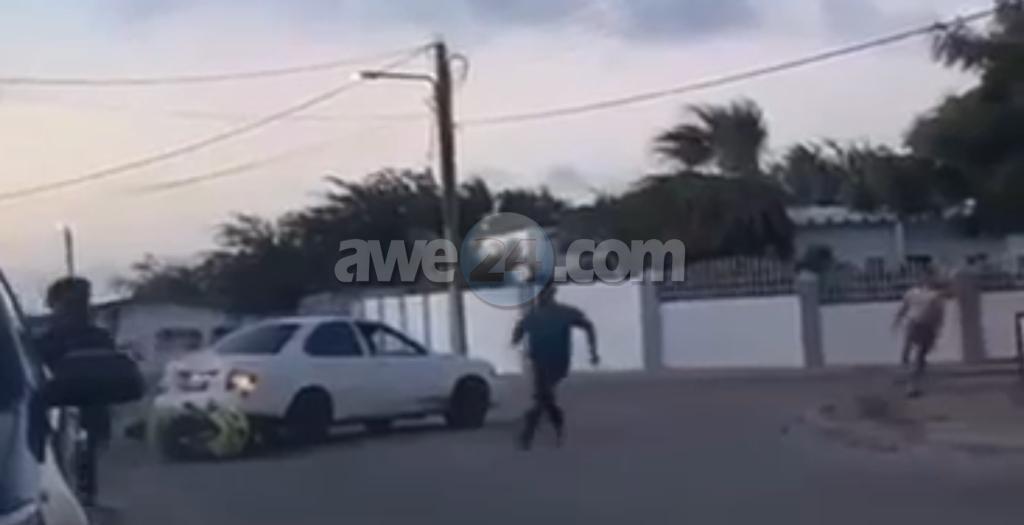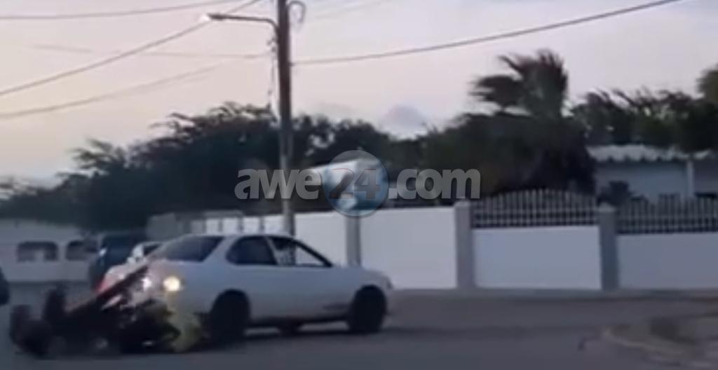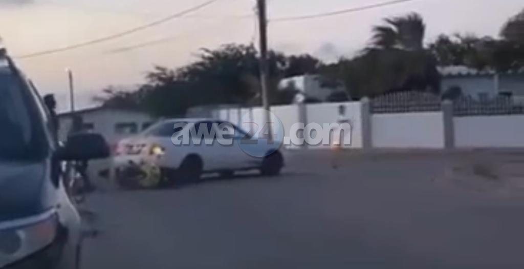 Diahuebs atardi laat a drenta informe di un problema grandi na Tarabana unda a manda auto riba brommer, mesora a dirigi varios patruya na e sitio. Na yegada di e patruya a bin compronde cu aki ta trata di 2 grupo cu antes tabata tin problema cu otro y awor atrobe. Ta asina cu 2 persona riba un brommer a para warda pa coy un piedra pa manda riba algun hende banda di Fiyostraat net ora un Nissan Sentra tabata yegando djey e Sentra a reverse dal e 2 persona riba brommer benta nan abao y asina mes a lanta purba core bay mientras e otro grupo a cuminsa core nan tras. Polisnan a yega mesora y a detene 2 persona tanto esun cu a manda piedra y e otro cu a reverse cu e auto dal e brommer.