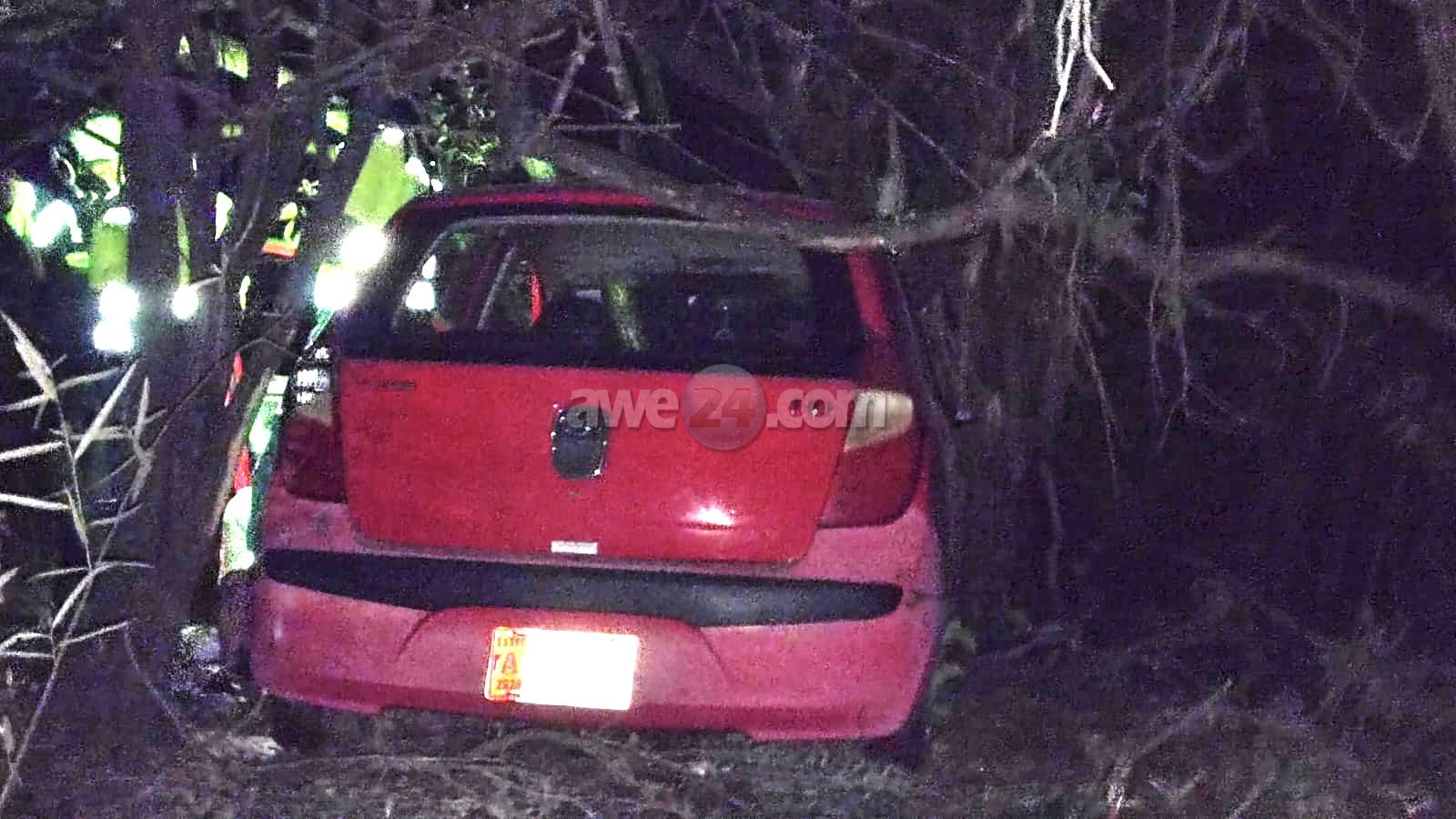 Diabierna anochi a drenta informe di cu un auto lo a drenta mondi banda di rotonde Mahuma, mesora a dirigi tanto polis como ambulans na e sitio. Na yegada di e patruya a bin compronde cu e chauffeur cu poco biña aden a baha caminda bay drenta mondi. Na prome instante e chauffeur no tabata desea atencion di ambulans pero asina mes polis a pidi ambulans pa asina controla e chauffeur.