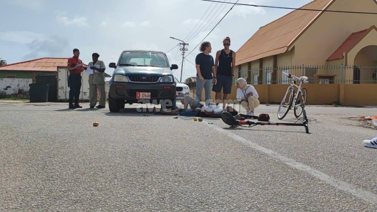Dialuna atardi a drenta informe di un accidente cu hende herida na e cruzada Weststraat/Boliviastraat, mesora a dirigi tanto polis como ambulans na e sitio. Na yegada di e patruya a bin compronde cu aki ta trata di un accidente unda cu e manehador di un electric step tabata for di nort den direccion prohibi riba Weststraat y un Daihatsu Terios biniendo for di pabao den Boliviastraat a wak pazuid so y a sali subi e cruzada y e electric step a bin dal den banda robes di e Terios. Debi na e impacto akine manehador di e step a cay kap su cabes. Na yegada di e ambulans nan a atende e victima y a transporte pa hospital.
