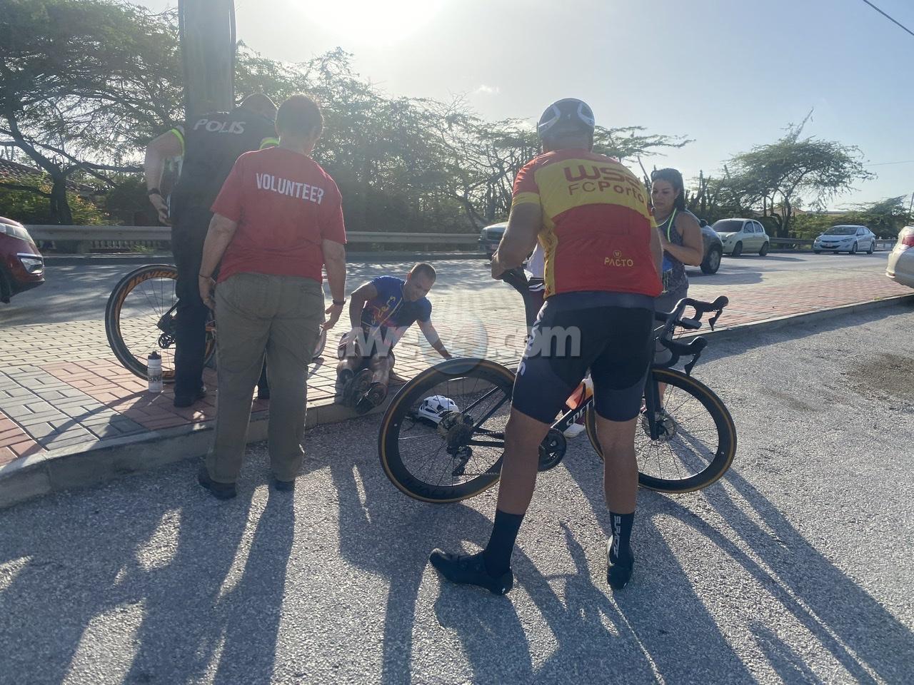 Diabierna atardi a drenta informe di un accidente cu hende herida pabao di e pompstation na Paradera, mesora a dirigi tanto polis como ambulans na e sitio. Na yegada di e patruya a bin compronde cu aki ta trata di un accidente unda un Kia Rio biniendo di pabao a bay bira na man robes dilanti un ciclista di direccion contrario y esaki a bin dal riba e auto y e ciclista a dal abao. Den e impacto y na e caida e ciclista a resulta herida. Na yegada di e ambulans nan a atende e victima.