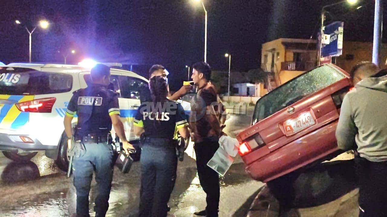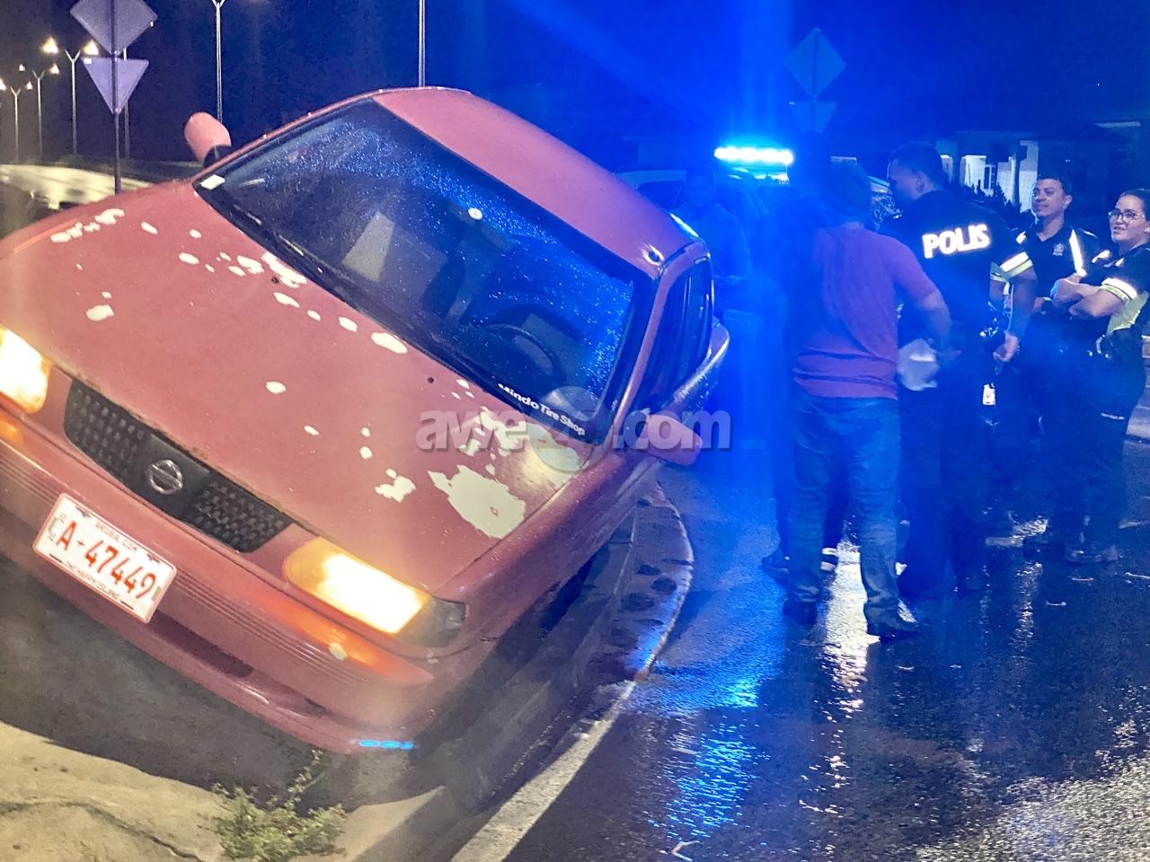 Diasabra madruga a drenta informe di un accidente unda cu un auto lo a bolter na rotonde Ponton riba E.J. “Watty” Vos blvd., mesora a dirigi patruyanan na e sitio. Na yegada di e patruya a bin compronde cu aki ningun auto a bolter pero si a keda pega den banda, locual a sosode ta cu door di e yobida y e wiper no ta traha e chauffeur no por a mira bon y a bira mucho tempran y a subi e acera den banda. Polis a nota cu e chauffeur ta poco bebi y ora a test e chauffeur esaki a indica cu e ta bao influencia y no ta permiti pa core auto. Polis mesora a detene y hib’e warda di polis. Afortunadamente ningun hende a resulta herida.
