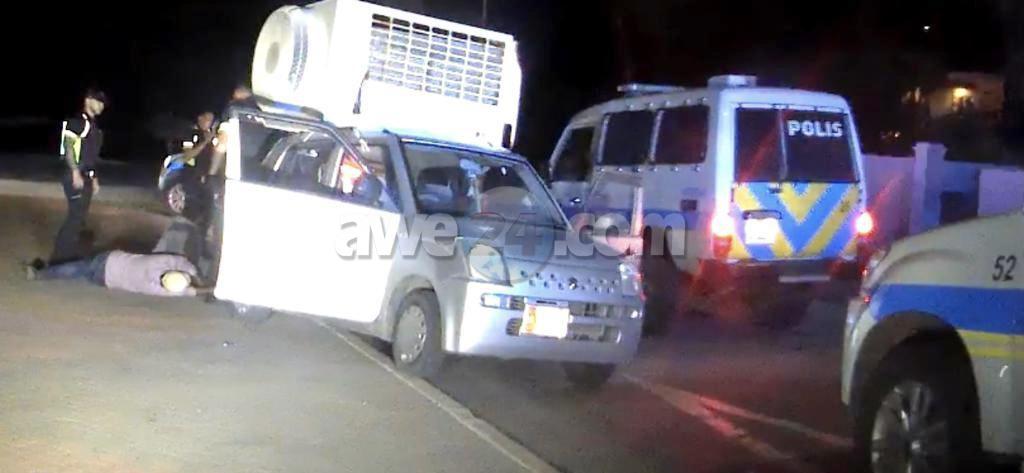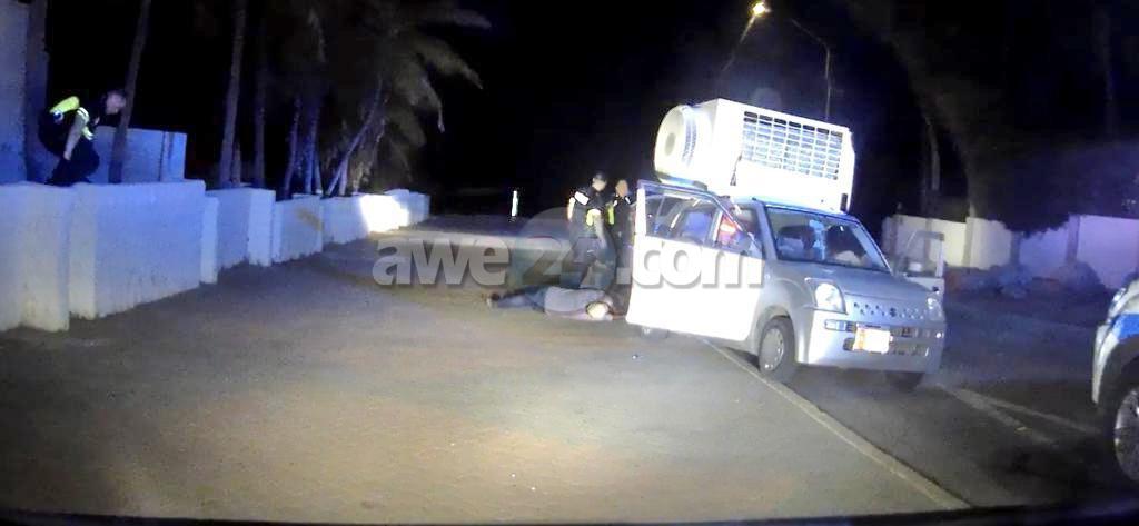 Diamars madruga a drenta di cu lo tin hende ta hortando un airco di un cas banda di Arashi, mesora a dirigi patruyanan na e sitio. Na yegada di e patruya nan a para e Suzuki Alto shinishi A49275 cu un airco grandi riba e dak di e auto y 3 persona den dje. Mesora polis a detene nan comonsospechoso di ladronicia di e airco grandi for di un cas net eynan mes. Polis a pidi pa e vehiculo di transporte y a hiba esakinan pa warda di polis mientras a confisca e auto cu e airco pa mas investigacion.