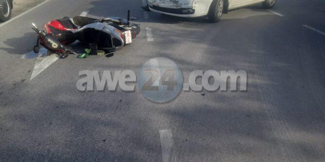 Diamars mainta a drenta informe di un accidente cu hende herida na e cruzada di Rooi Lamoenchi na Pos Chikito, mesora a dirigi tanto polis como ambulans na e sitio. Na yegada di e patruya di e patruya a bin compronde cu un auto bayendo pbaobriba e caminda principal a para pa duna preferencia na e Hyunday Accent sali for di Rooi Lamoenchi pero e chauffeur di e Accent no a mira cu tabata tin un scooter tambe bayendo pabao na banda di e auto y nan a dal den otro. Debi na e impacto y caida e motociclista a resulta herida, na yegada di e ambulans nan a atende victima y a transporte pa hospital pa un atencion mas extenso.