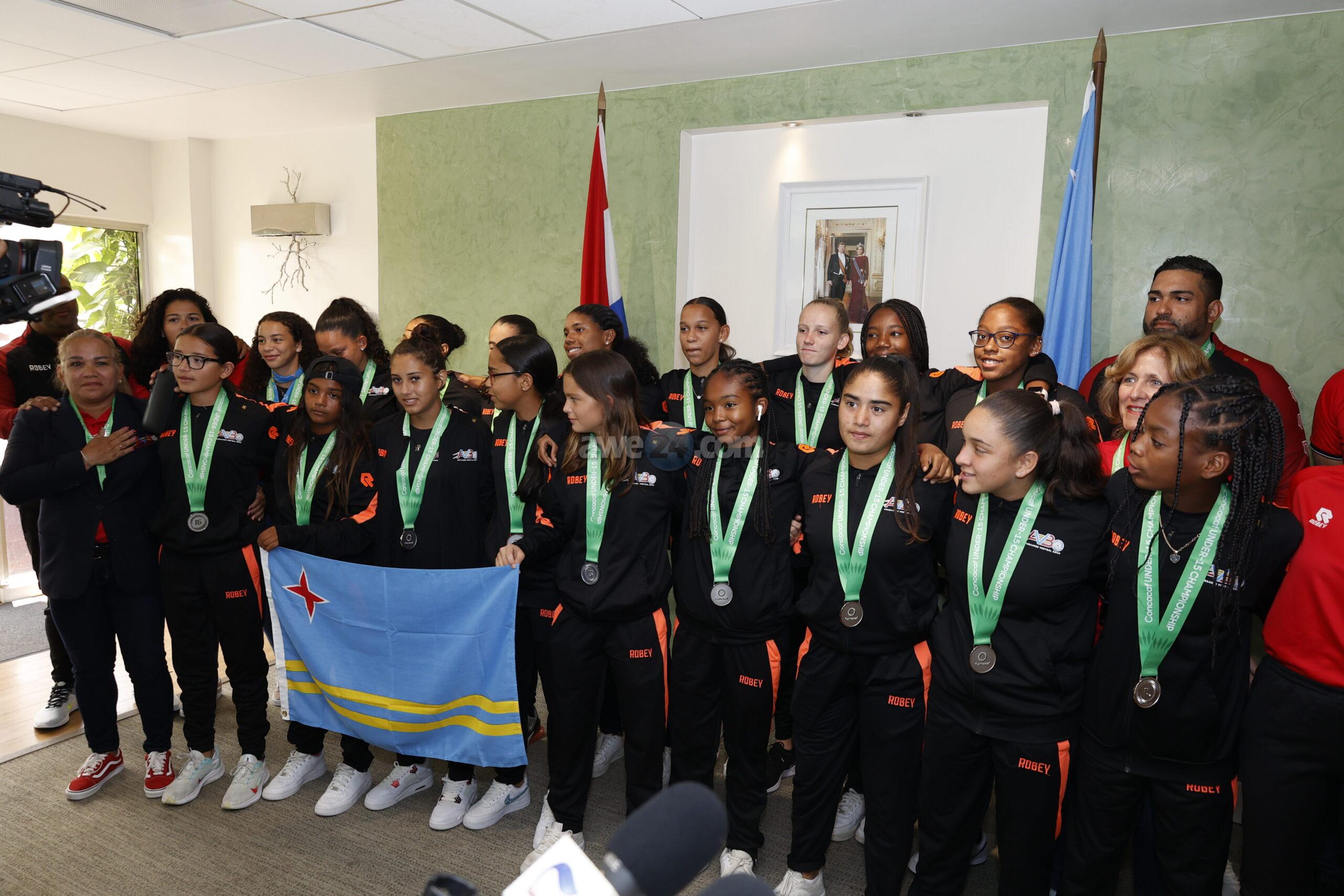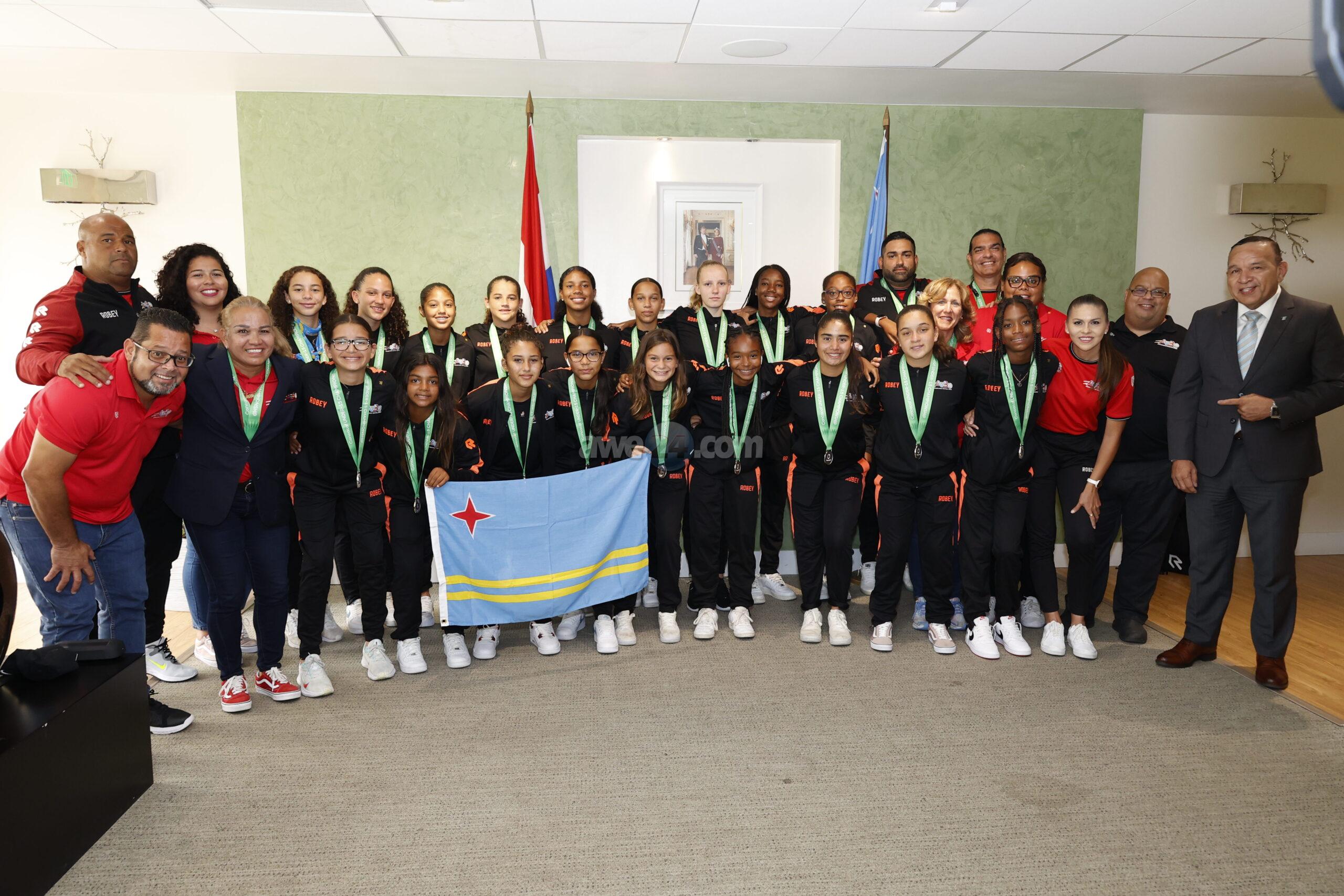 ORANJESTAD: Dialuna atardi Minister Endy Croes tabatapresente den e VIP Room na aeropuerto internacional Reina Beatrix pa yama bonbini na nos Seleccion Nacional Girls U15. Famia, amigo y conocinan tabata en espera di yegada di nos atletanan. Sigur tabata reina un ambiente ameno yena cu alegria y emocion. Nos Seleccion Nacional Girls U 15 a lograconkista e titulo di subcampeon den e 2022 CONCACAF Girls Under 15 Championship cu a tuma luga na Tampa, Florida. E mandatario di Deporte a hiba palabra na e ocasionspecial aki na unda e la felicita e futbolistanan como tambe e entrenandonan cu a dedica asina hopi pa hiba e ekipo na egran logro aki. Minister Endy Croes a sigui bisa cu Aruba tabata den e gara di weganan y a biba caba un di e momentonan aki cu boso.