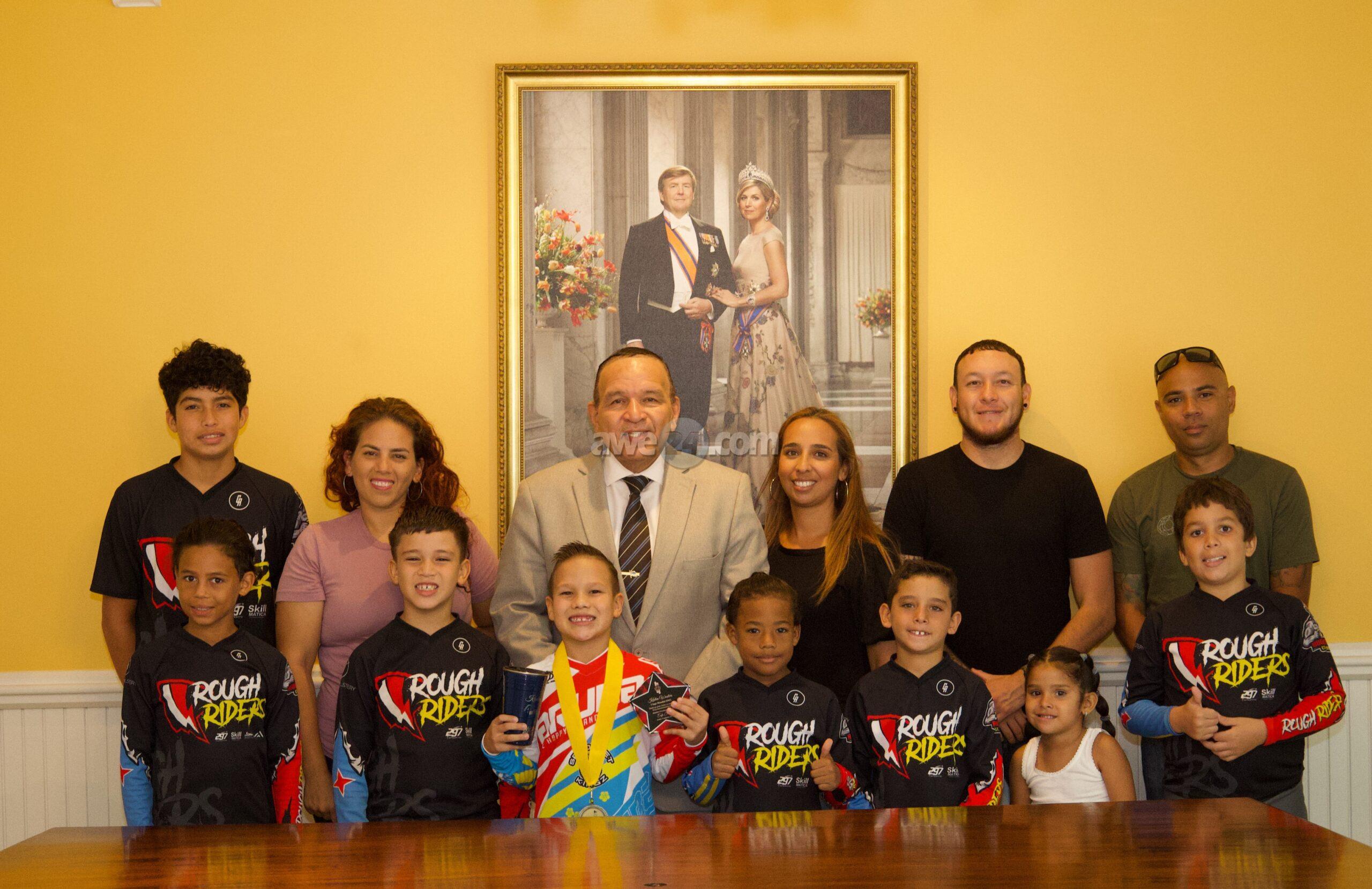 ORANJESTAD: Diamars atardi den un encuentro amenoMinister Endy Croes a ricibi e hoben atleta Kailen Wouterskende recientemente a participa den e campeonato mundial di BMX 2022 cu a tuma luga na Nantes, Francia. Na unda cu Kailen a logra di 5 luga di e miho nan na mundo den sucategoria di mucha homber 8 aña. Un total di 25 pais y 55 coredo a participa den e UCI BMX World Championships 2022. Esaki sigur ta un logro grandisimo pa Kailen cu a subi e plataforma mundial di BMX den su categoria di 8 aña.