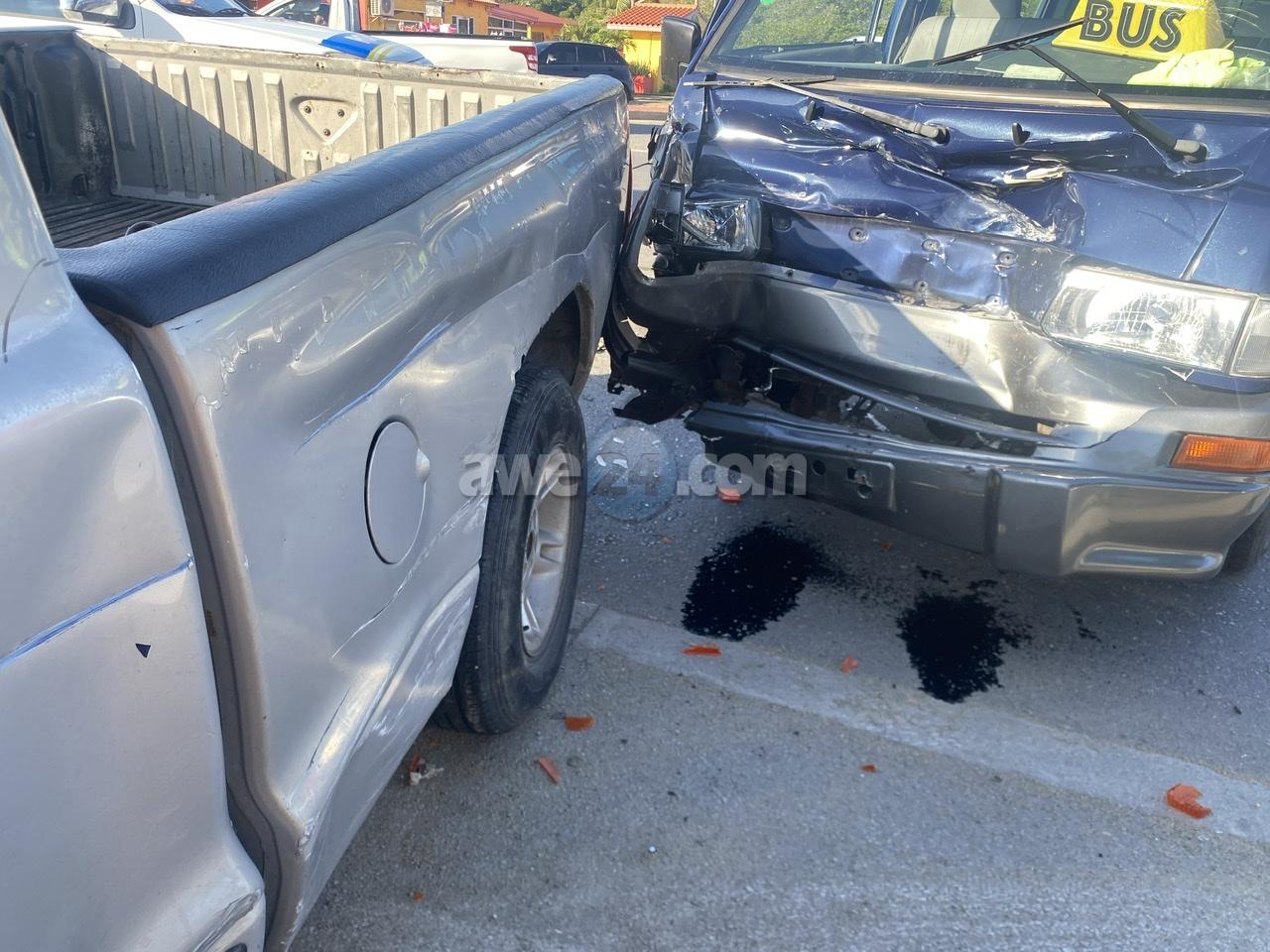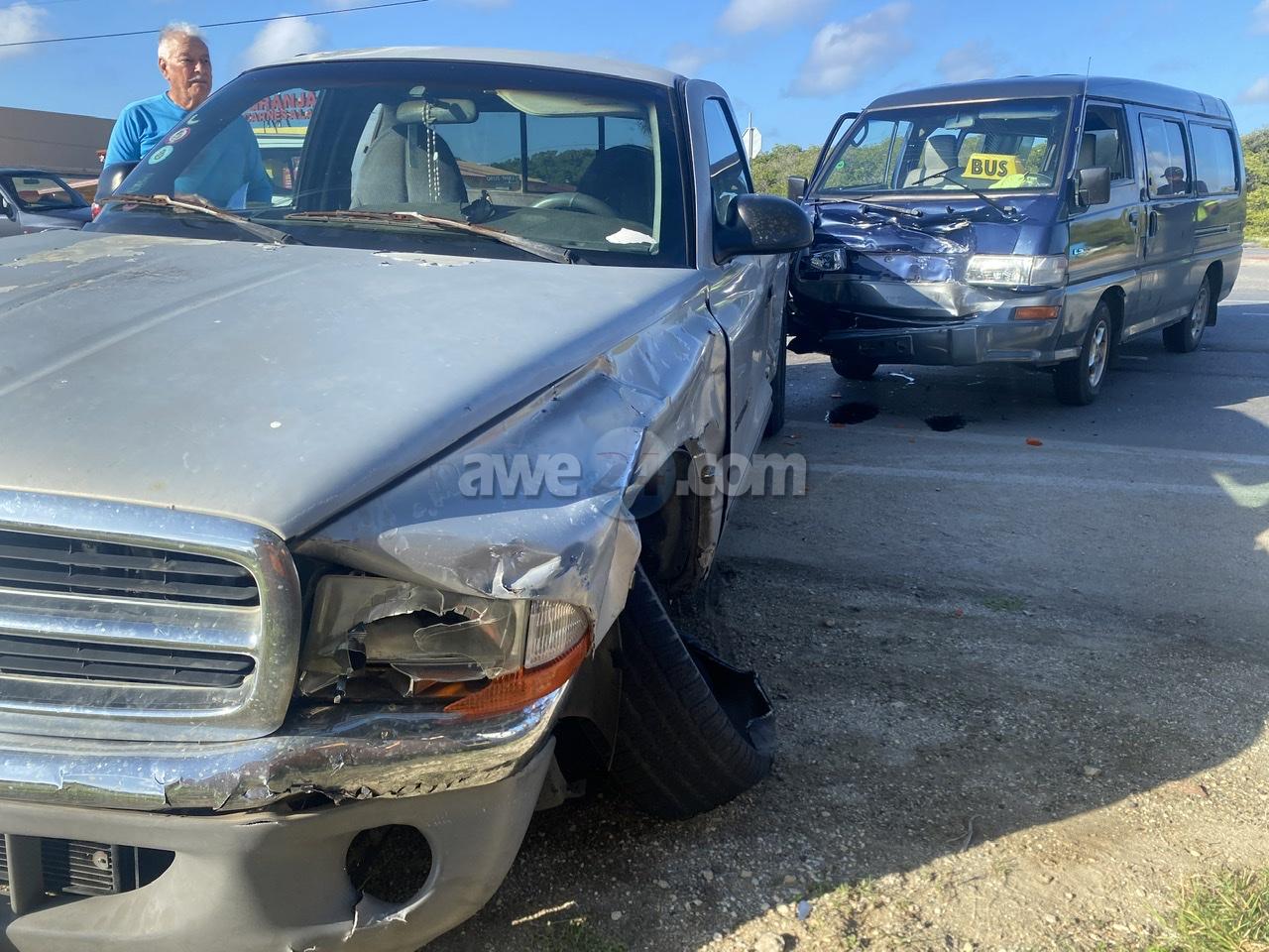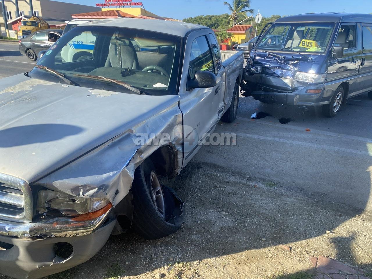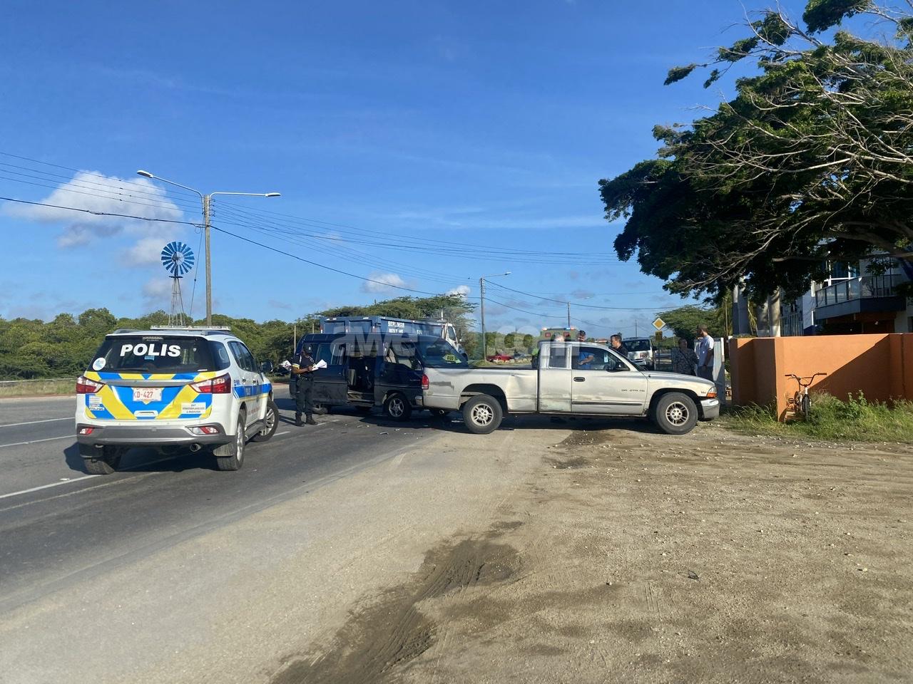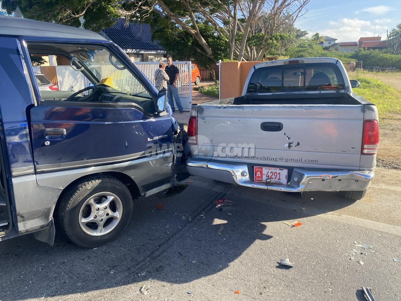 Diahuebs mainta a drenta informe di un accidente banda di La Granja na Savaneta, mesora a dirigi tanto polis como ambulans na e sitio. Na yegada di e patruya a bin compronde cu aki ta trata di un accidente pa falta di preferencia unda e chauffeur di e pickup Dodge Dakota cu a bay subi e caminda grandi dilanti Mangel Halto net pabao di La Granja pero e no a duna preferencia na e Mitsubishi L300 bus bayendo pariba. E impacto tabata basta fuerte cu hopi daño y lagando tanto e chauffeur di e pickup como e pasahero den e bus herida. Na yegada di e ambulans nan a atende tanto e chauffeur di e pickup cu tabata spanta como tambe e pasahero di e bus cu a resulta herida cu un corta y un bolonbonchi riba su wowo. Ambulans a atende e chauffeur na e sitio mes mientras e pasahero di e bus sina ser hiba hospital.