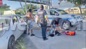 Diahuebs atardi a drenta informe di cu un conocido persona cu problema di salud mental lo ta coriendo tras di un otro persona cu un cuchiu pa hinke den Scobillostraat na Pos Chikito, mesora a dirigi patruyanan na e sitio. Na caminda pa e sitio a drenta un otro informe di cu e agresor a logra staka e victima y esaki ta herida pariba di e rotonde Pos Chikito. Na yegada di e patruya na e sitio a pidi ambulans cu urgencia ya cu e victima tin un hinka di cuchiu bao nek. E agresor mes a core bay for di e sitio y a bay sconde na su cas na Scobillostraat. Na yegada di e ambulans nan a atende e victima y a transporte cu urgencia pa hospital. Mientras e otro patruyanan a bay na e cas di e sospechoso y a detene, polis a haya e arma y a confisca esaki pa mas investigacion.