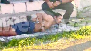 Despues di a core tras di su victima den Scobillostraat e sospechoso a staka e victima na su nek. Polis a detene e sospechoso