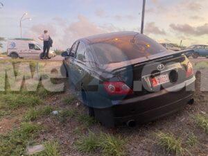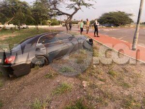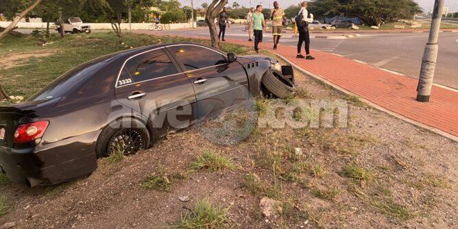 Diasabra mainta tempran a drenta informe di un accidente na e rotonde Pos Chikito, mesora a dirigi un patruya na e sitio. Na yegada di e patruya a bin compronde cu aki ta trata di e Toyota MarkX A28011 cual tabata bayendo pariba acercando e rotonde cu un velocidad basta halto y a purba pas’e na banda pero a bay dal riba un palo di lus y a cay den banda for di e caminda. Afortunadamente ningun hende a resulta herida.
