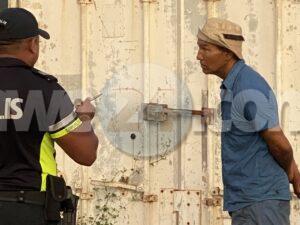 Diamars mainta tempran a drenta informe di cu tin un persona sospechoso riba e containernan pabao di e rotonde nobo na Oranjestad, mesora a dirigi un patruya na e sitio. Na yegada di e patruya a bin encontra cu un adicto ambulante riba e container. Polis a ordene pa e baha y a bay controla riba e containernan pero noba topa cu nada particular. Polis a core cun’e for di e sitio.