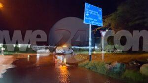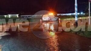 Diaranzon madruga durante patruya polisnan atento di distrito 2 (Noord) a tuma nota cu awa tabata sali for di bao tera e tabata sali cu preshon y a yena hopi lugar cu awa banda di Palm Beach Plaza. Mesora a avisa W.E.B. cual a presenta rapidamente pa atende cu e bashamento di awa den e area.