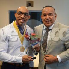 ORANJESTAD: Diamars merdia Minister Endy Croes ricibialgun atleta hoben di ekipo di Gymnastics Aruba CGA Avanse cu a competi den Yamilet Peña Classics 2022. E competencia a tuma luga siman pasa na Punta Cana, Republica Dominicana unda 9 pais y mas di 35 gimnasta a participa. Pa Aruba un total di 17 atleta a competi y a logravarios medaya.