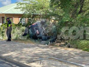 Diasabra mainta a drenta informe di un accidente cu hende herida den Bernhardstraat, mesora a dirigi tanto polis como ambulans na e sitio. Na yegada di e patruya a bin compronde cu aki ta trata di e Ford Escape preto A68671 coriendo cu velocidad halto a perde control baha caminda y bolter. Debi na e accidente aki e chauffeur a keda pega den e auto y a solicita e equipo di rescate di bombero. Na yegada di e ambulans nan a atende e chauffeur pero mester a warda bomberonan yega pa asina logra saca e victima. Na yegada di e bombero nan a libera e victima y ambulans a transporte pa hospital pero escolta pa polis ya cu e victima tabata inquieto.